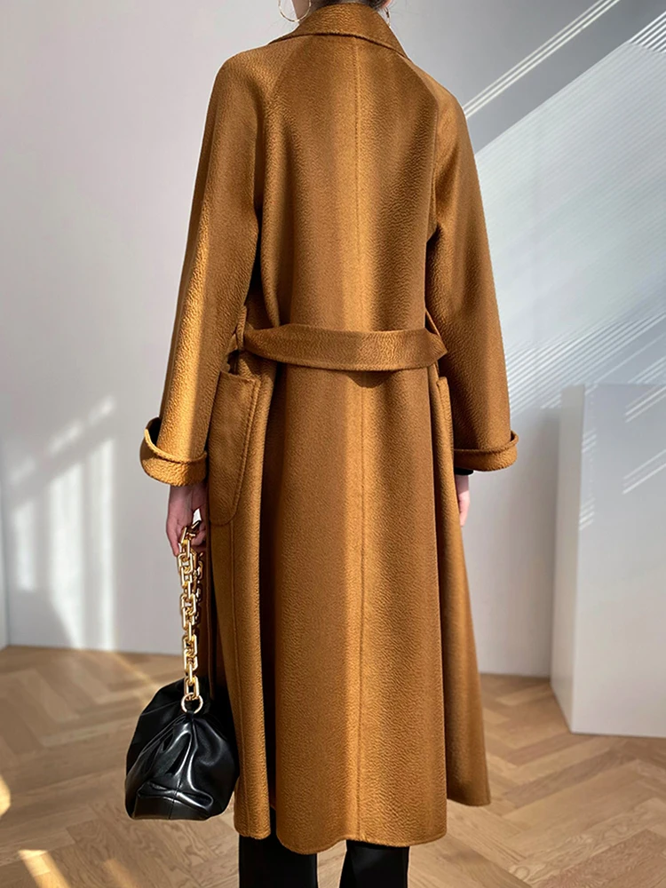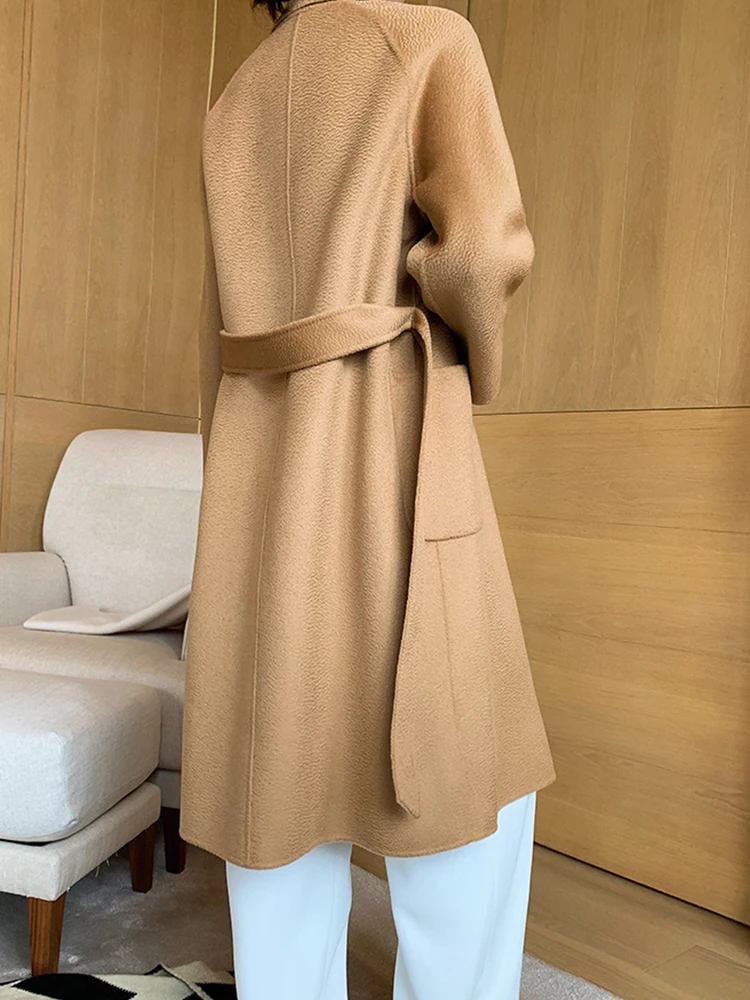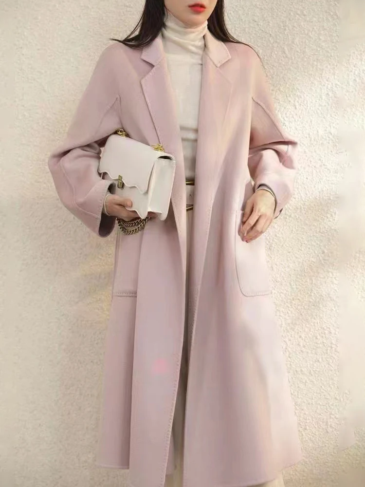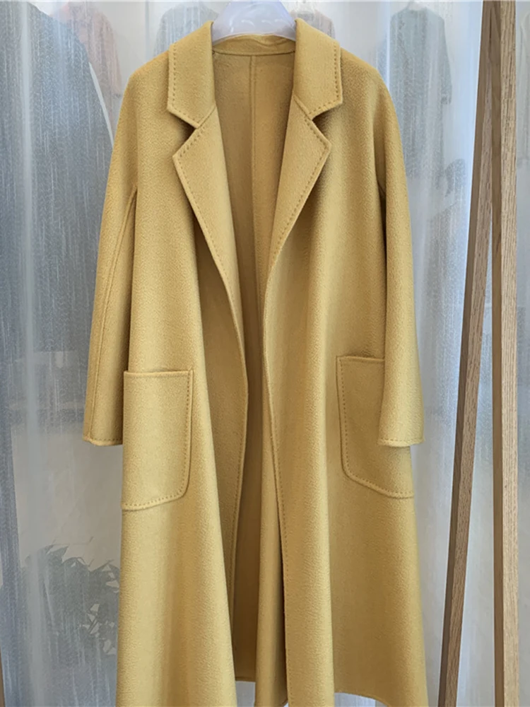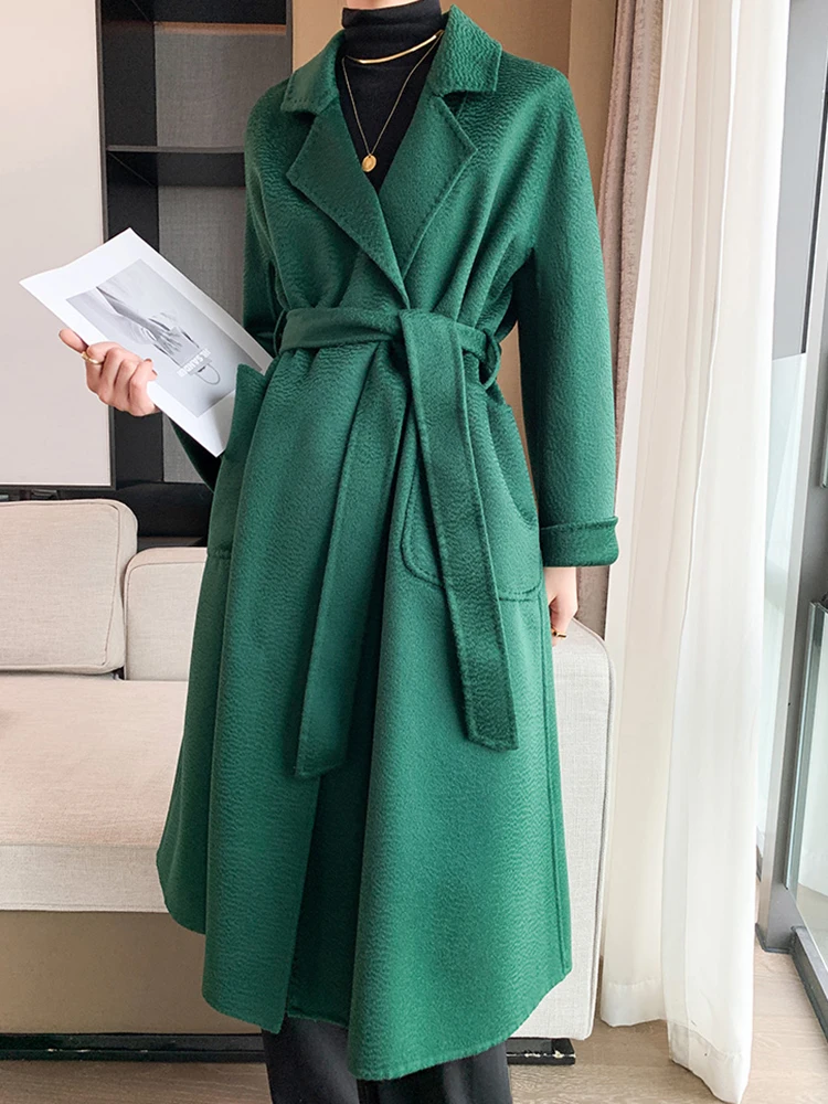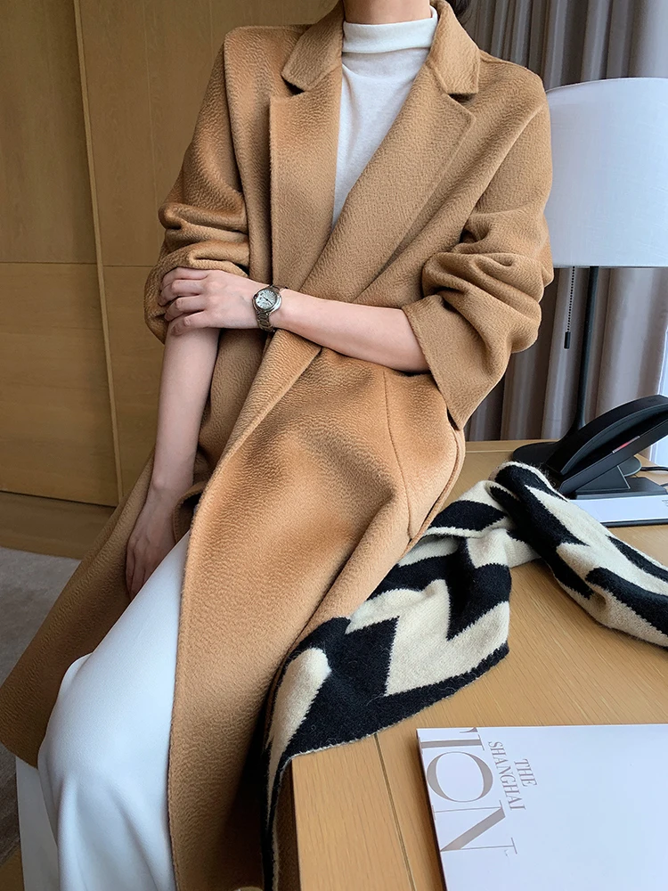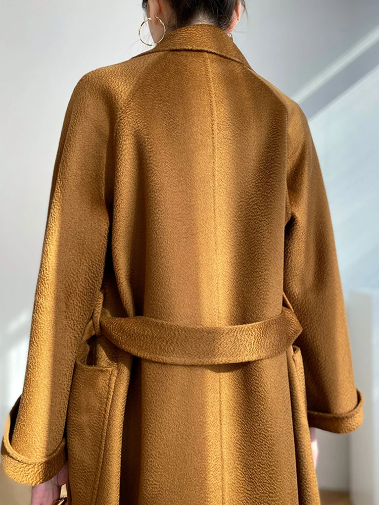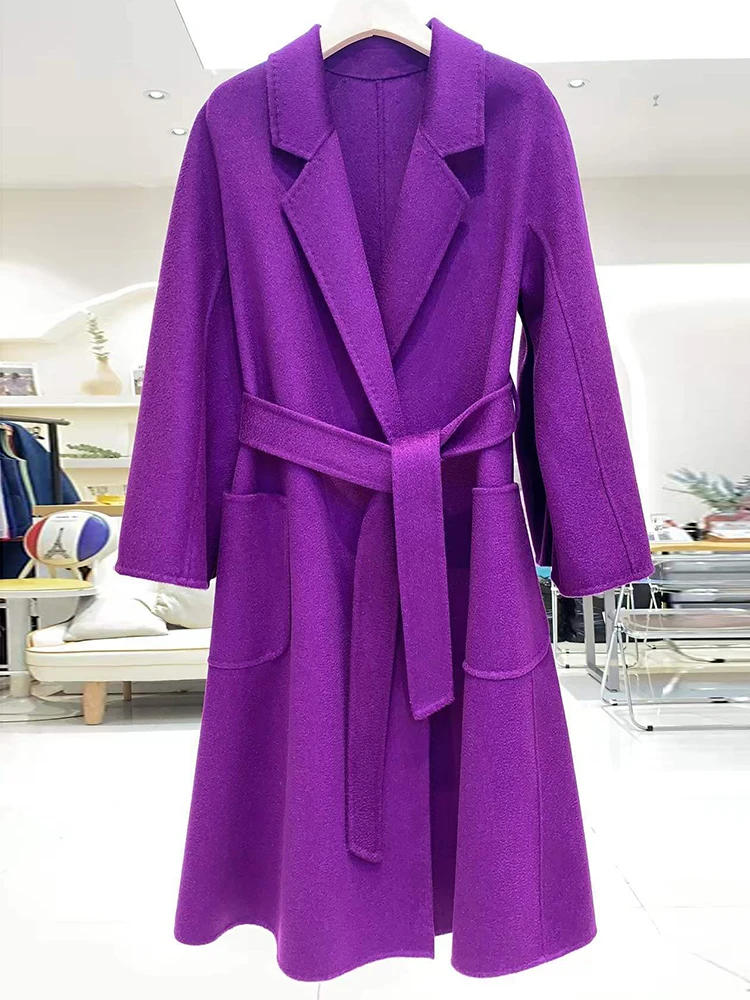 TWOTWINSTYLE Water Ripple Double-sided Wool Coat For Women Lapel Long Sleeve Lace Up Solid Autumn Winter Coat For Female Fashion