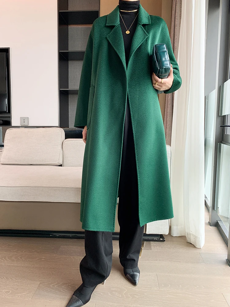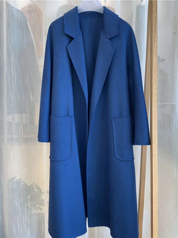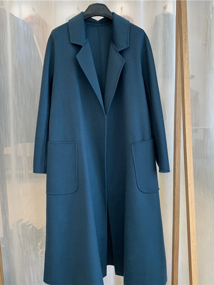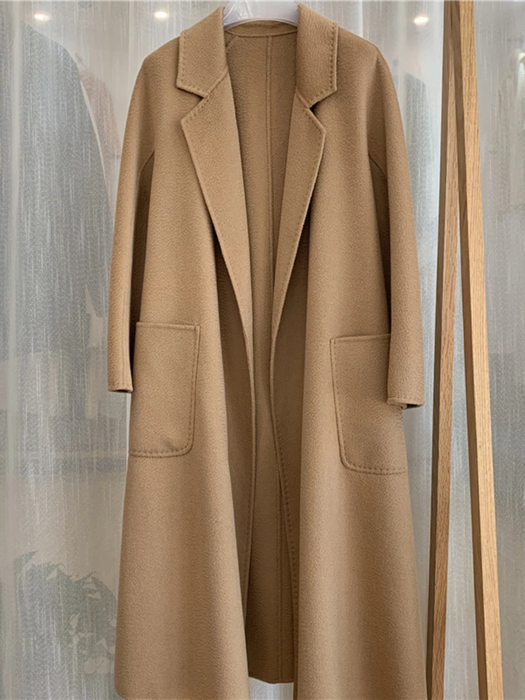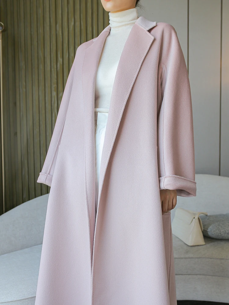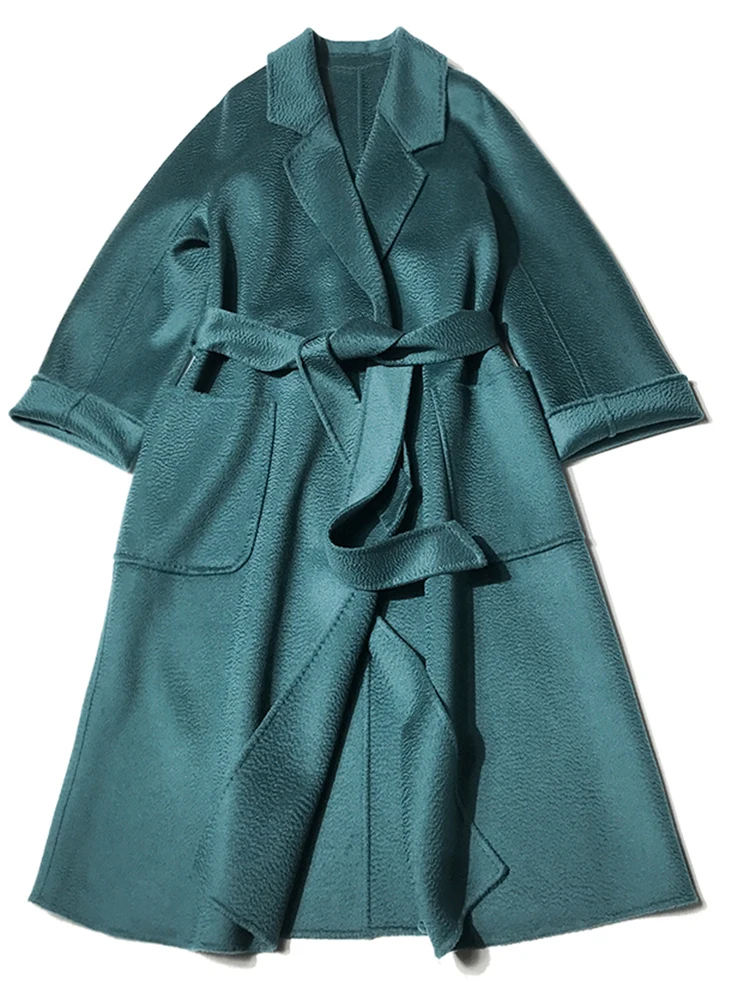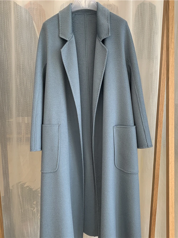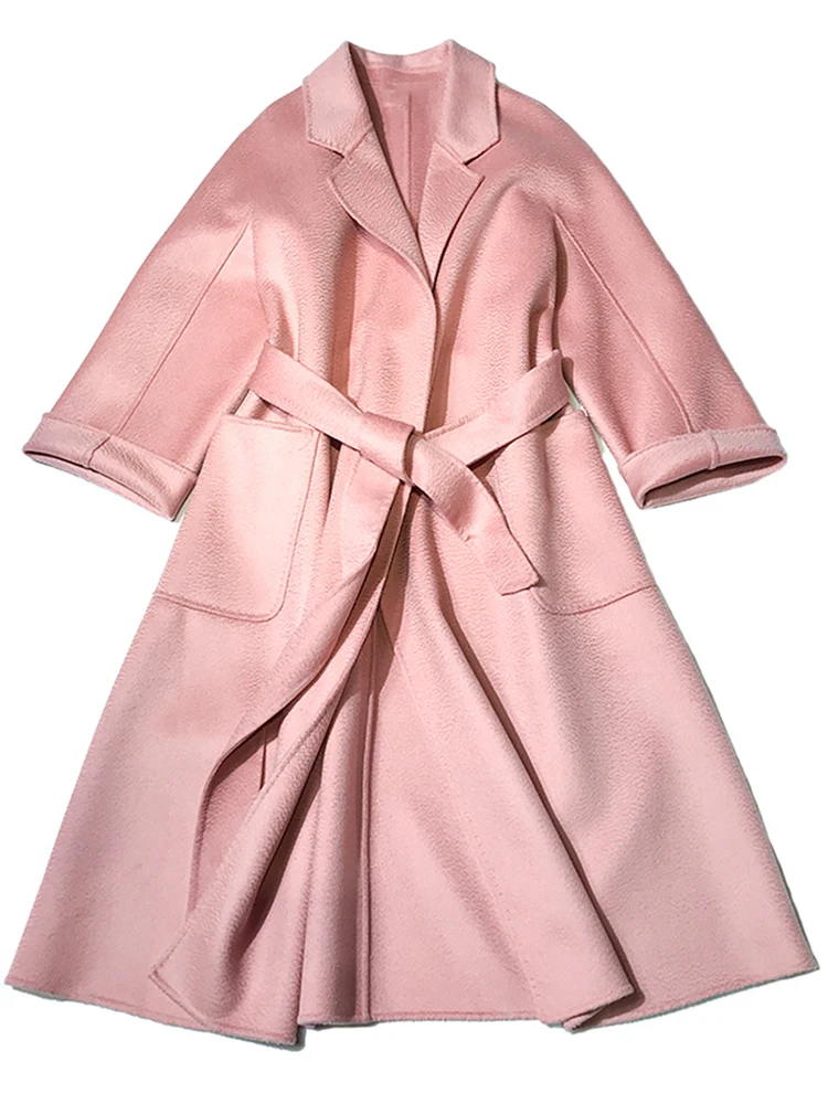 TWOTWINSTYLE Water Ripple Double-sided Wool Coat For Women Lapel Long Sleeve Lace Up Solid Autumn Winter Coat For Female Fashion