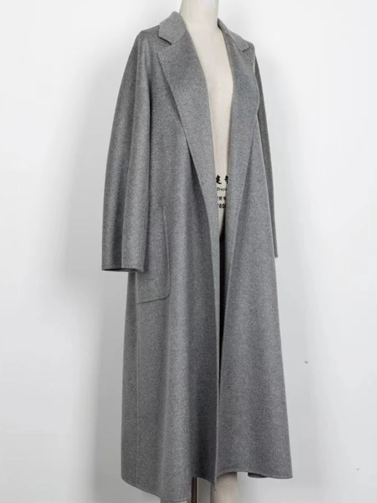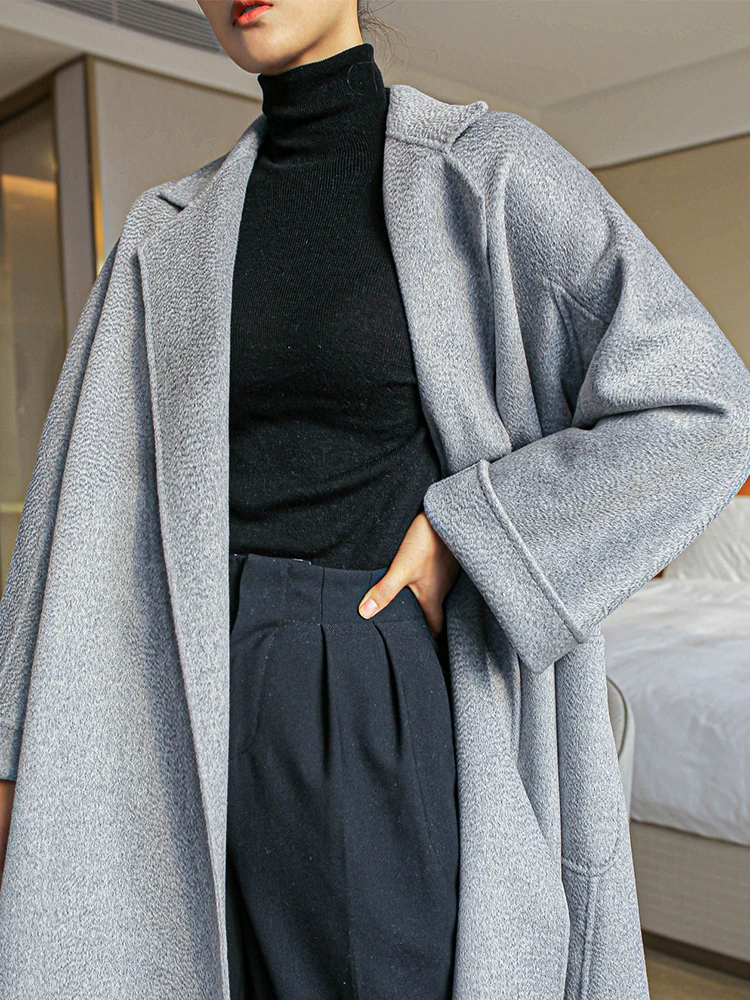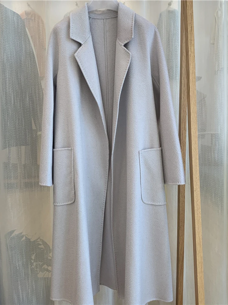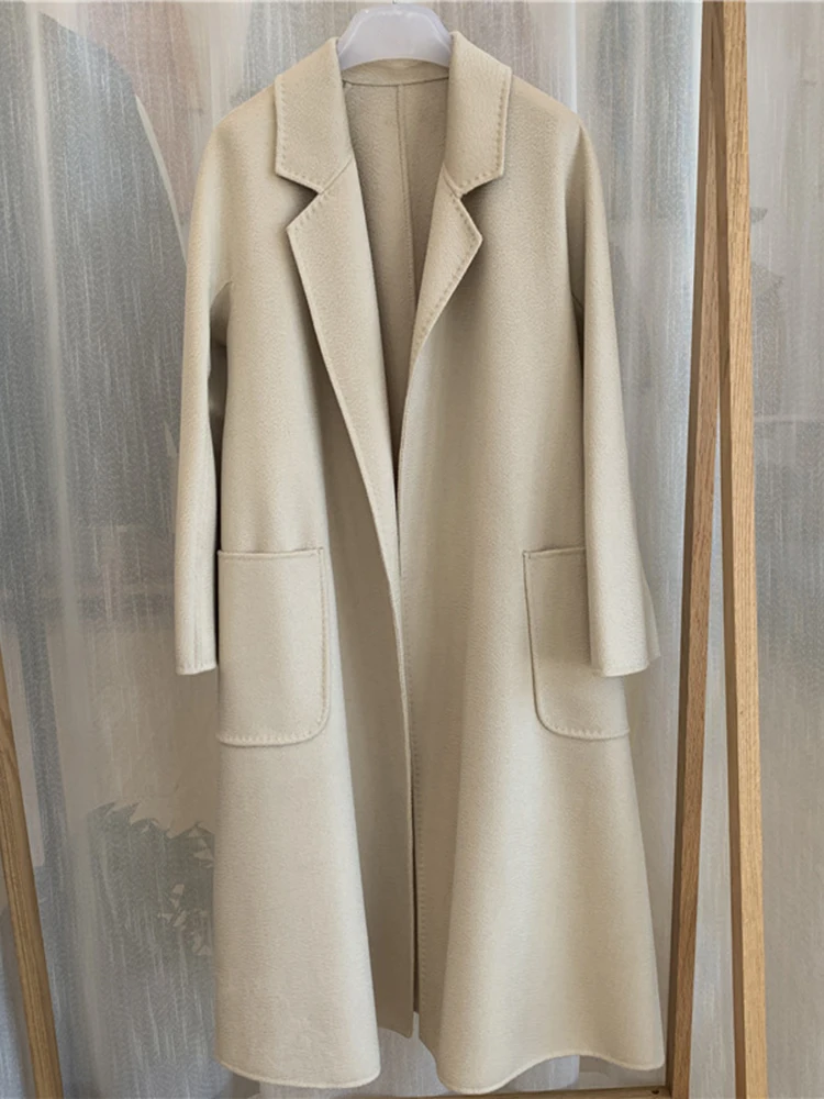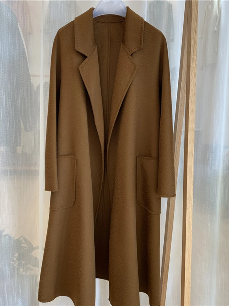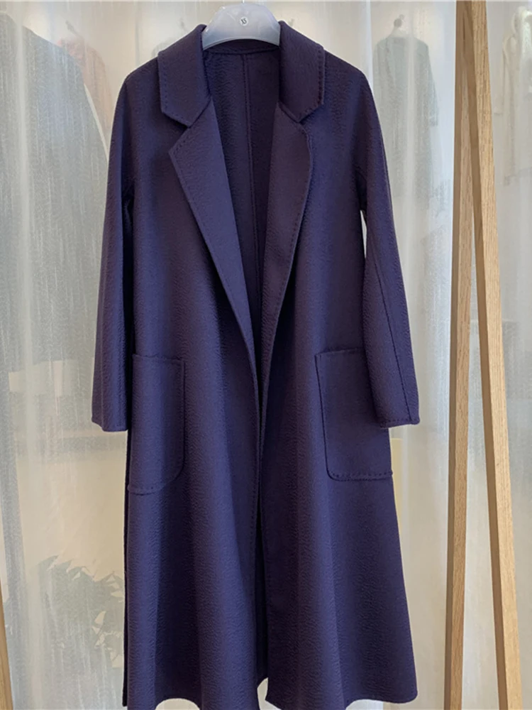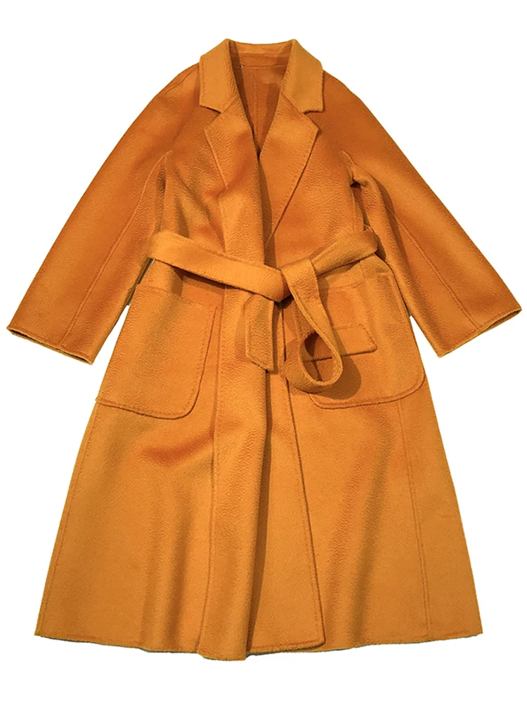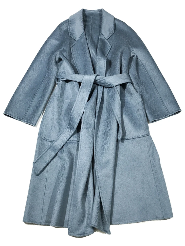 TWOTWINSTYLE Water Ripple Double-sided Wool Coat For Women Lapel Long Sleeve Lace Up Solid Autumn Winter Coat For Female Fashion