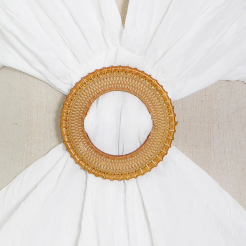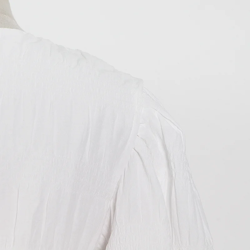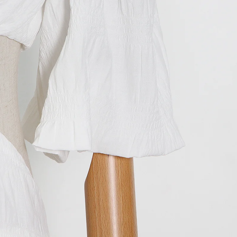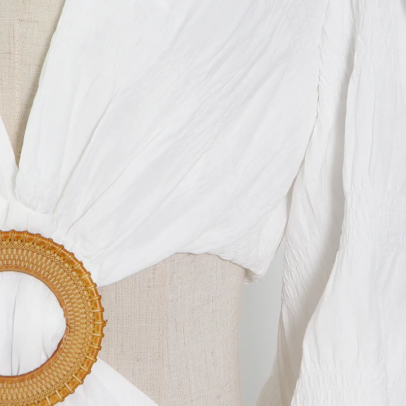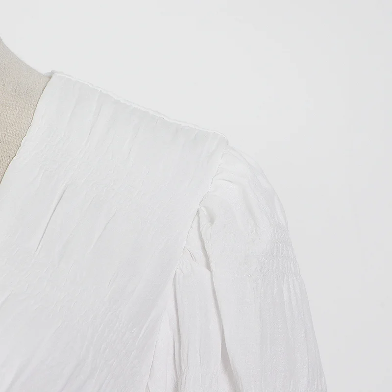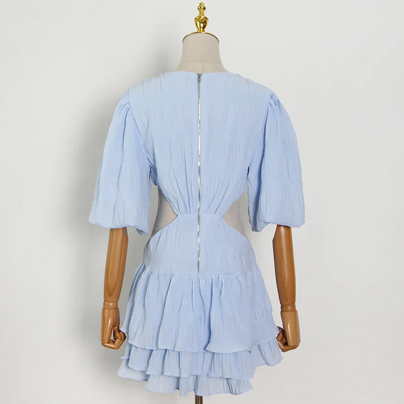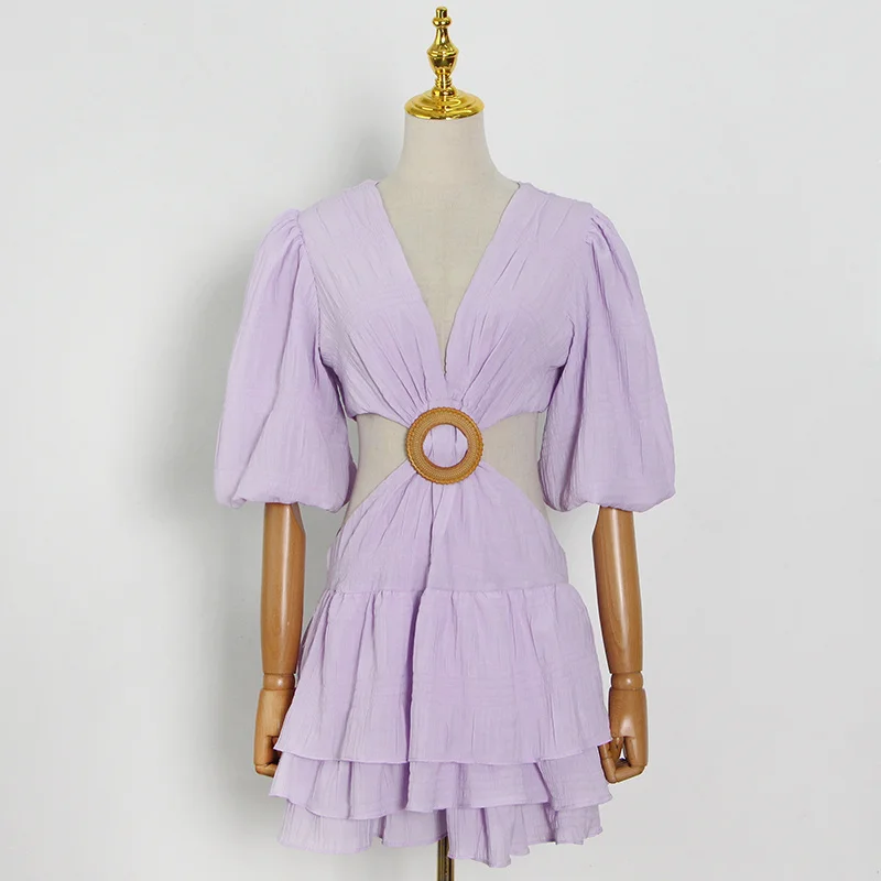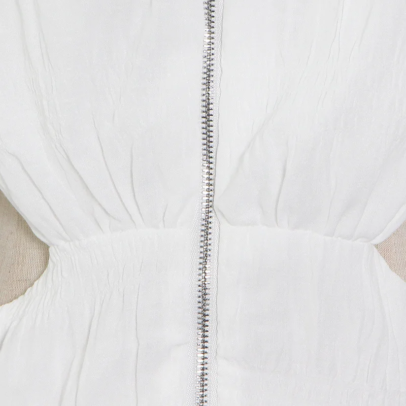 TWOTWINSTYLE White Sexy Dress For Women V Neck Lantern Half Sleeve Hollow Out High Waist Mini Dresses Female Summer New Clothing