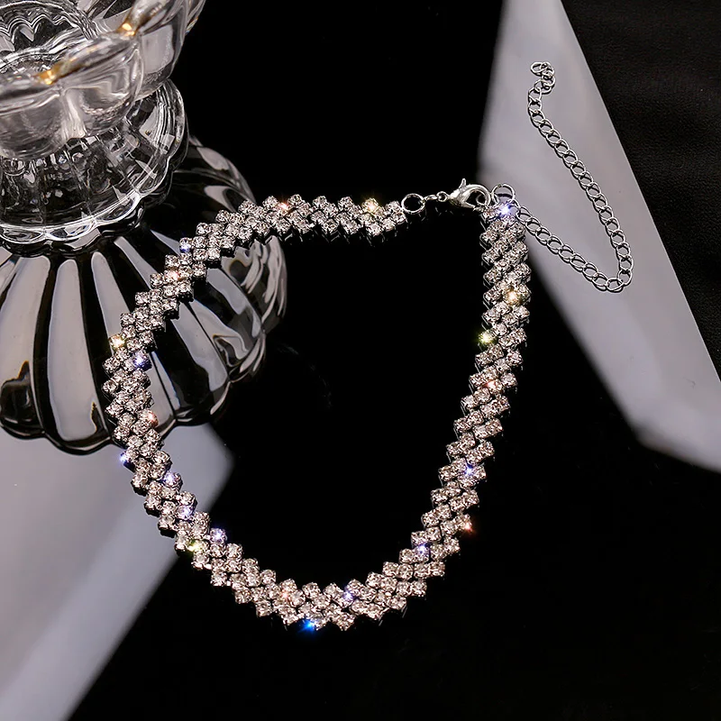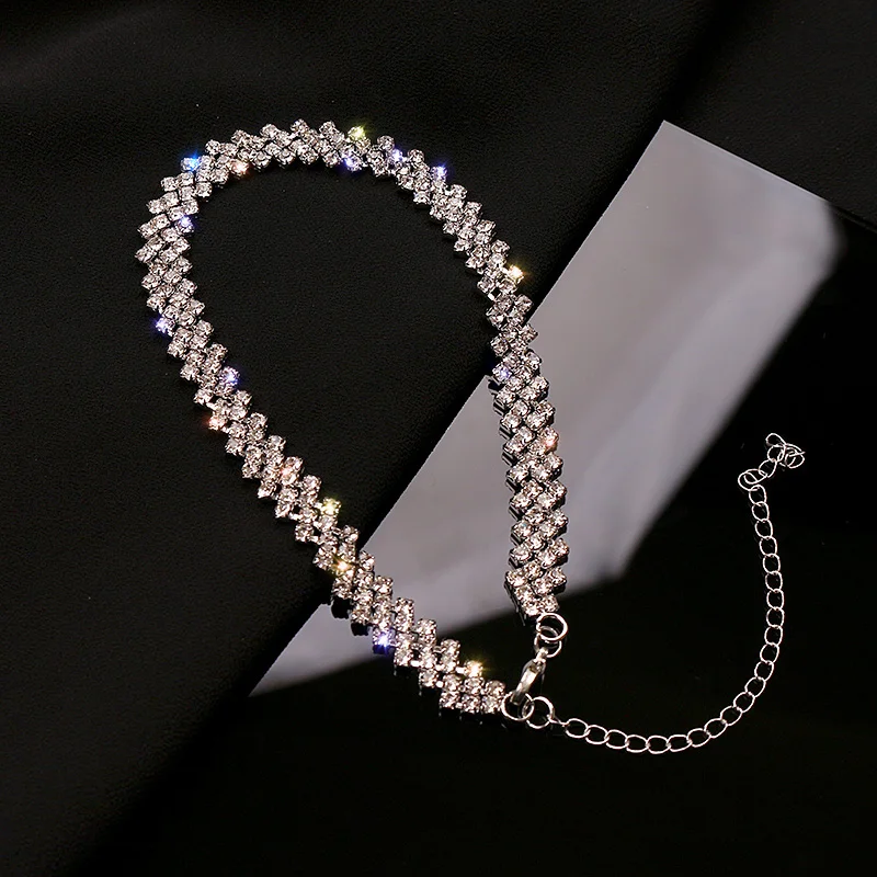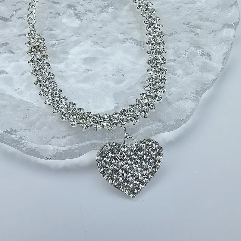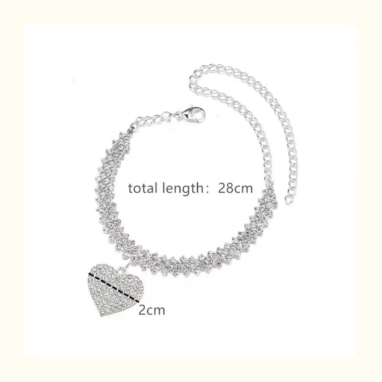 Uilz Boho Silver Color Shiny Rhinestone Chain Anklets for Women Beach Luxury Heart Bracelet on Leg Accessories Foot Jewelry
