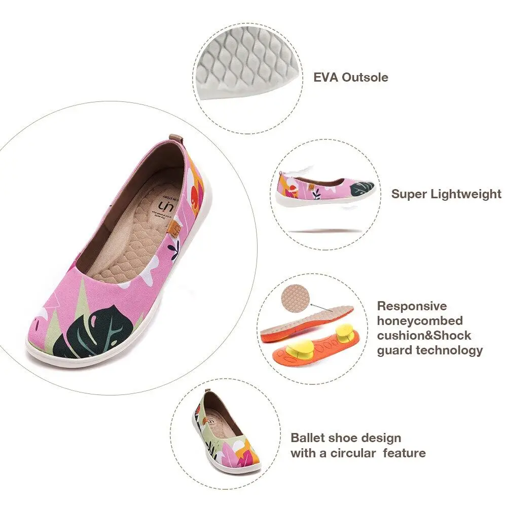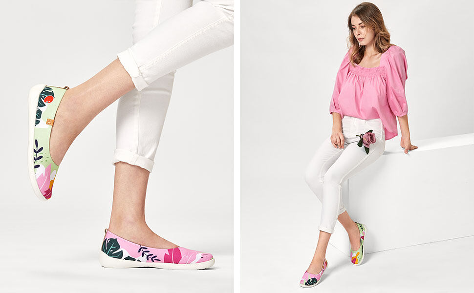 UIN Women's Ballet Flats Cute Floral Lightweight Slip On Art Painted Comfort Round Toe Shoes Summer Jungle