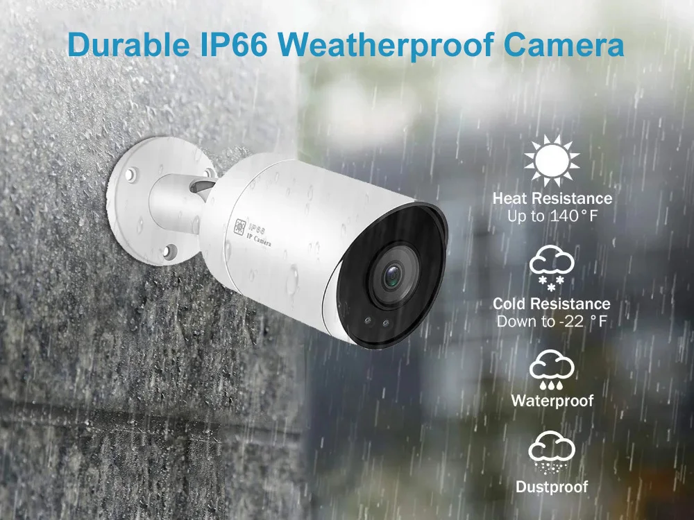 With 18PCs LED lights and improved infrared radiation for 24-hour vigilance, the 5MP cameras ensure a clear night vision, up to 100 feet long distance (depending on the environment).