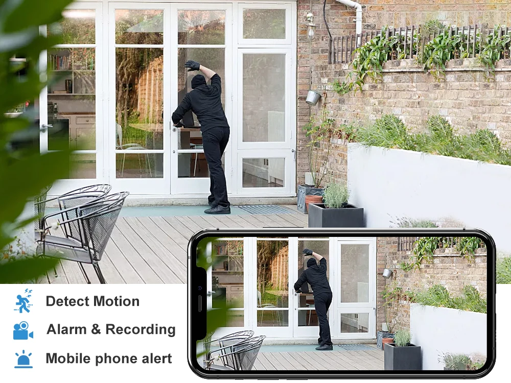 Within the monitoring range, the system will automatically detect intruders, and push the alarm information in time, to remind you to take action to protect your property.