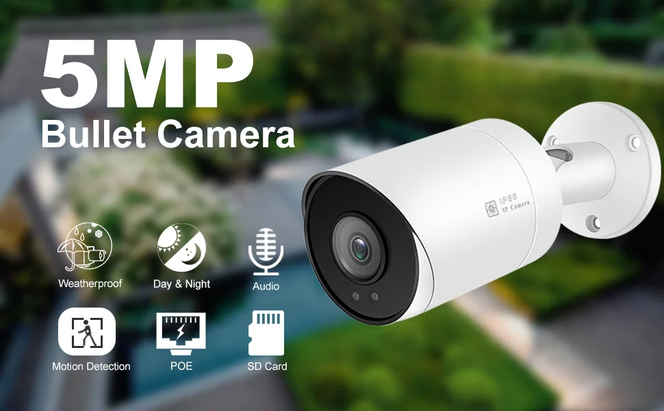 UniLook 5MP IP Camera Outdoor POE Bullet Hikvision Compatible With Audio Motion Alarm SD Card Slot CCTV Security Camera IR 30m