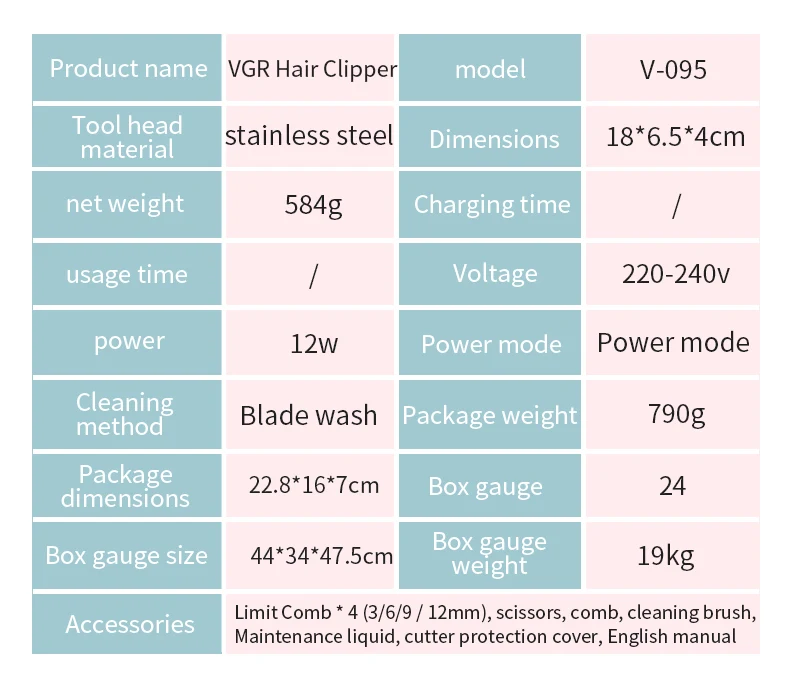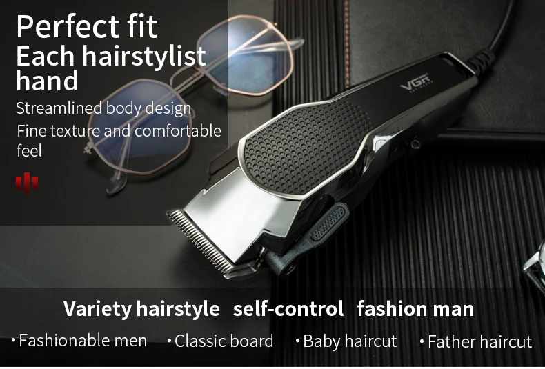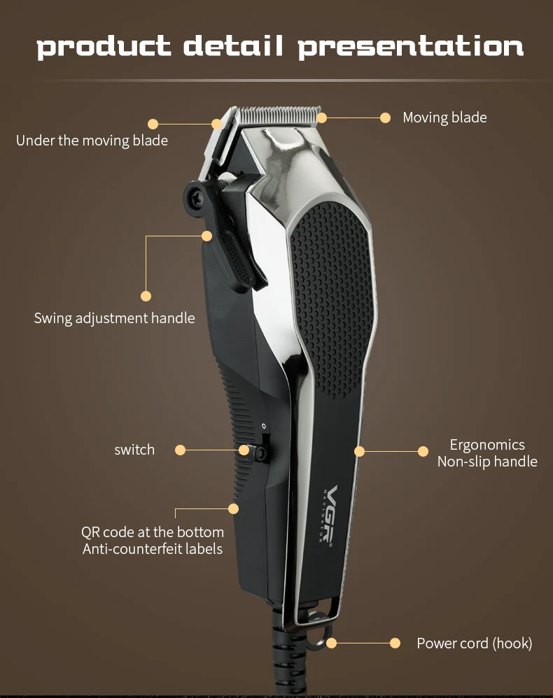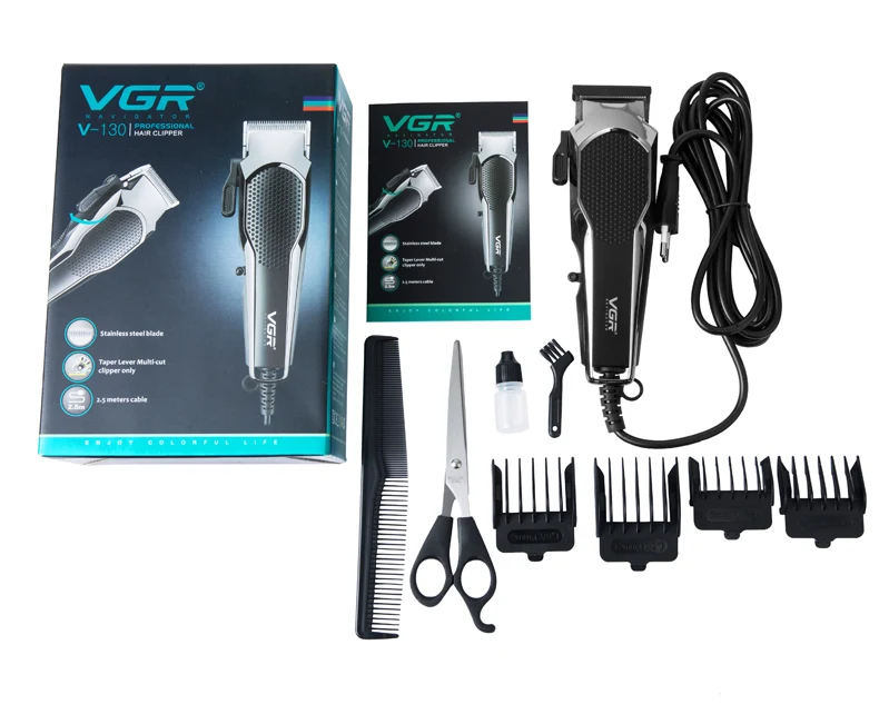 VGR 130 Hair Clipper Professional Personal Care Barber Retro Scissor High Power Gradient Plug-In Trimmer For Men Set VGR V130