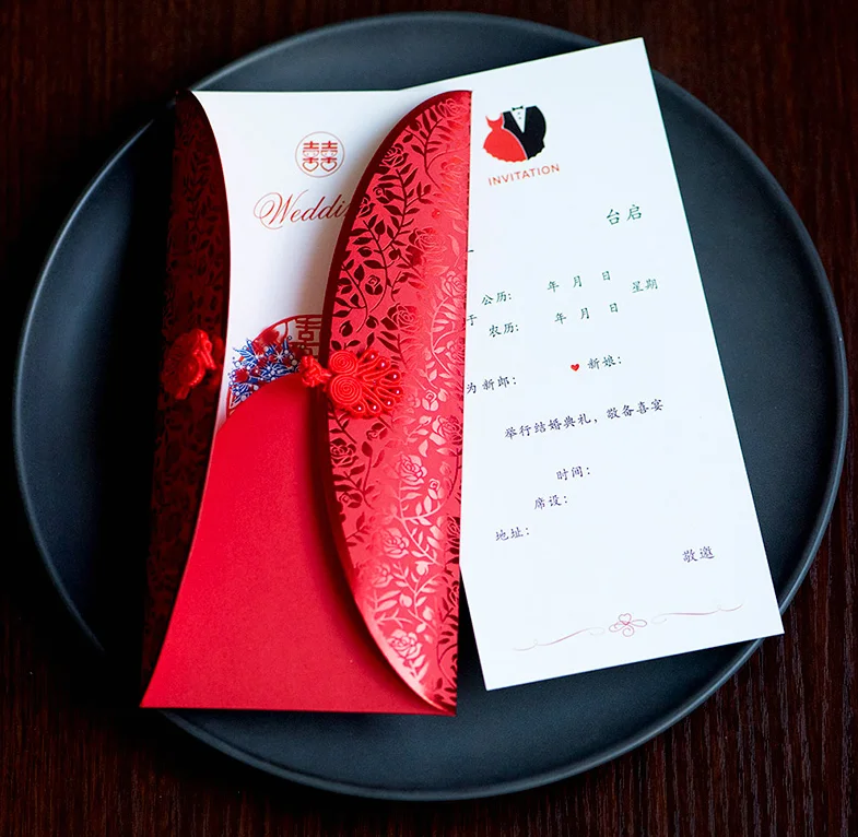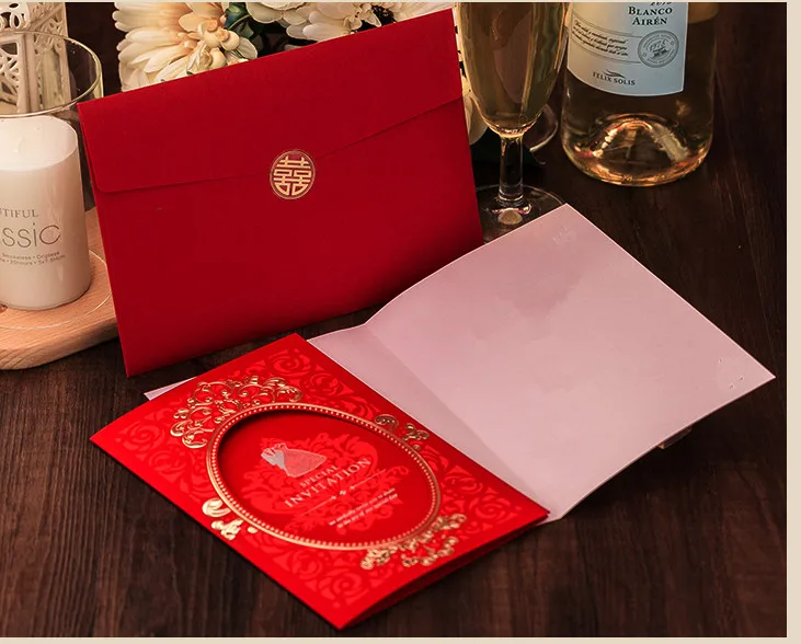 Vintage Wedding Supplies China Laser Cut Luxurious Butterflies Wedding Invitations Red Elegant Wedding Invitation Paper Cards