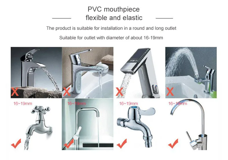 3. Types B and C are suitable for 1.6-2.3cm cylindrical faucets.