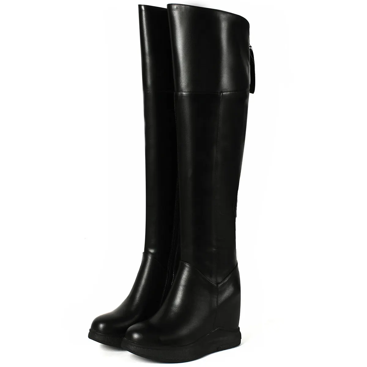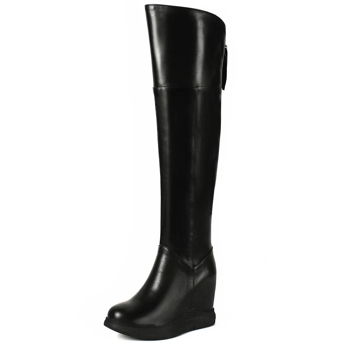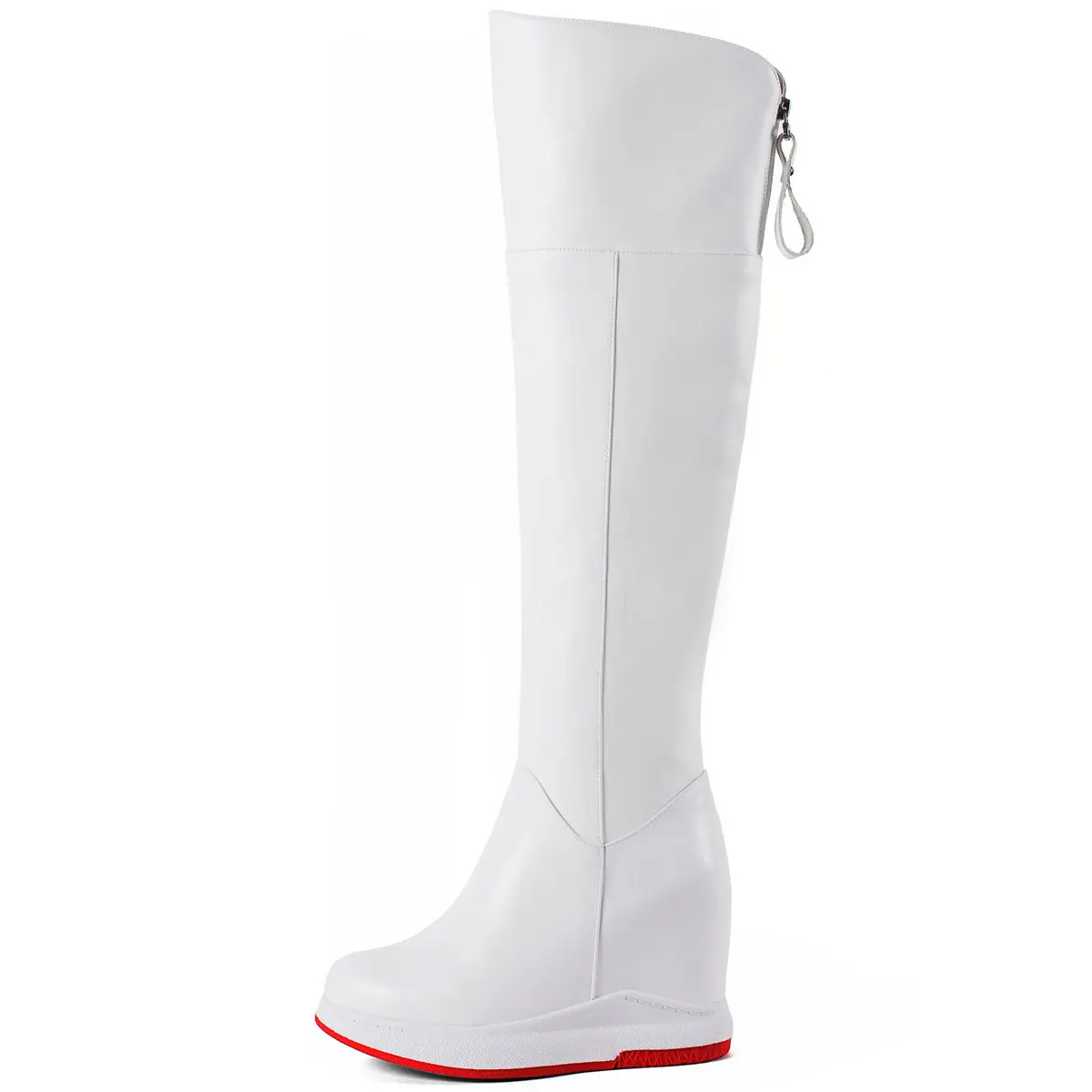 Wedges Fashion Sneakers Women Genuine Leather Over The Knee High Boots Female Winter Warm High Heel Platform Pumps Casual Shoes
