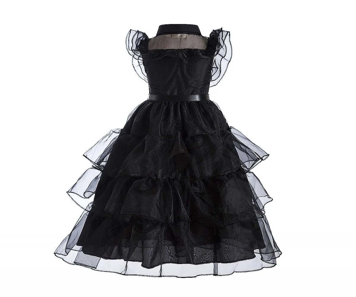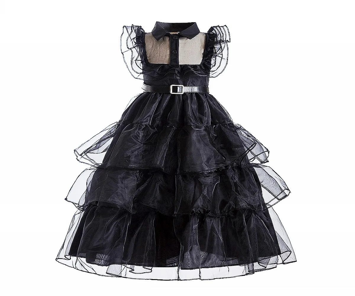 Wednesday Addams Girls Black tulle dress Wednesday Addams cosplay trendy Wednesday Dance dress Wednesday Addams kids dress belt