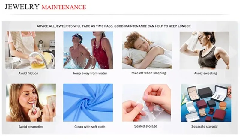 3) Jewelry maintenance – Please read the jewelry care picture below carefully.