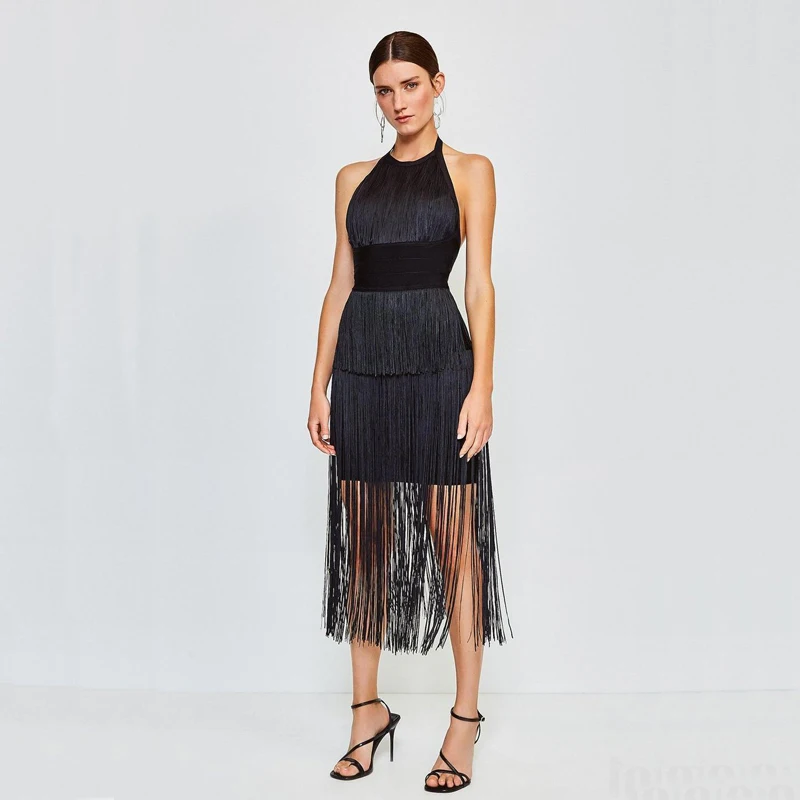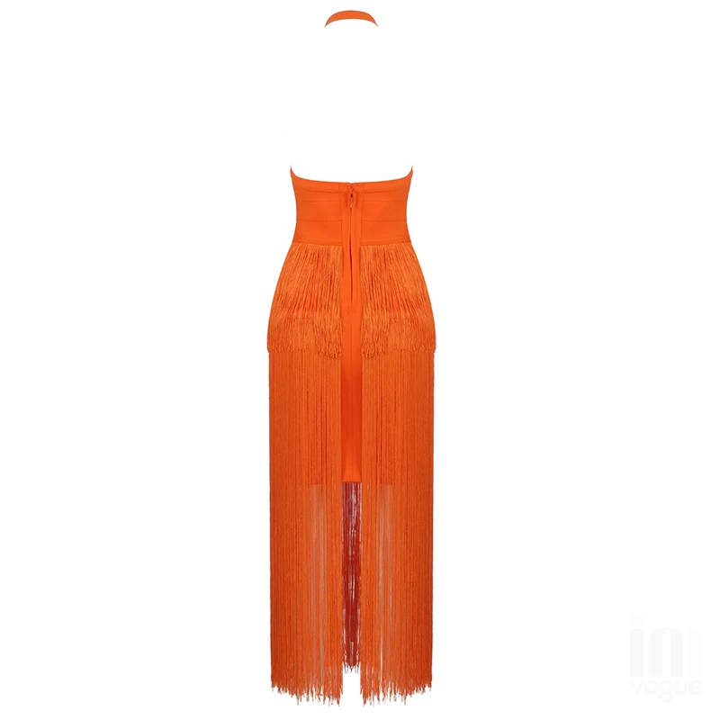Wholesale Women's Many Colours Halter Tassel Backless Sexy Boutique Celebrity Cocktail Party Bandage Dress