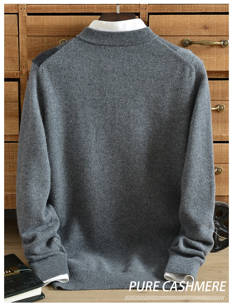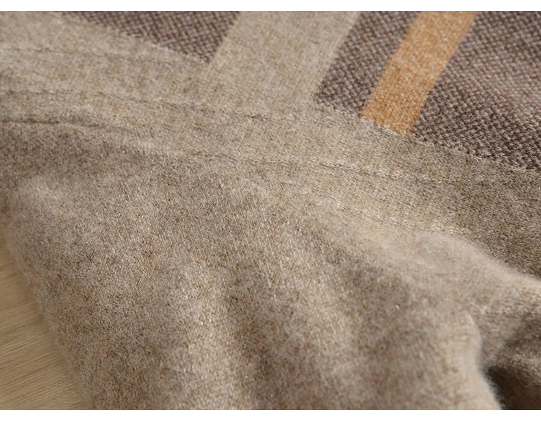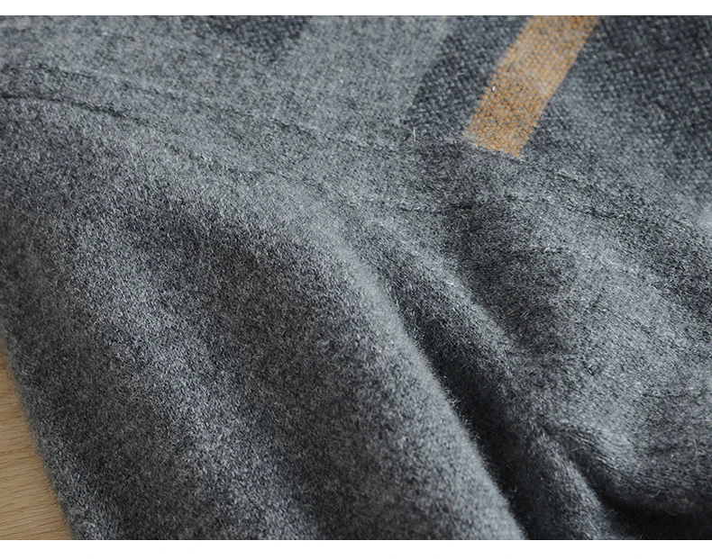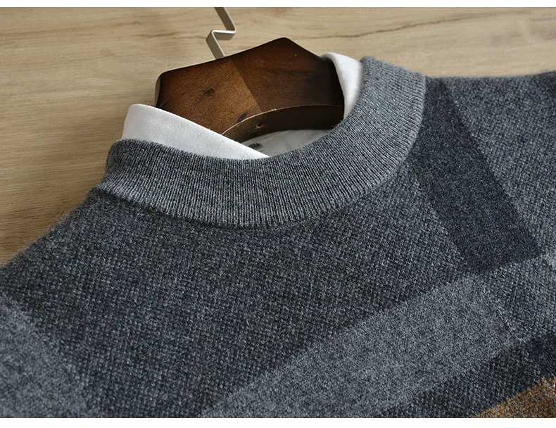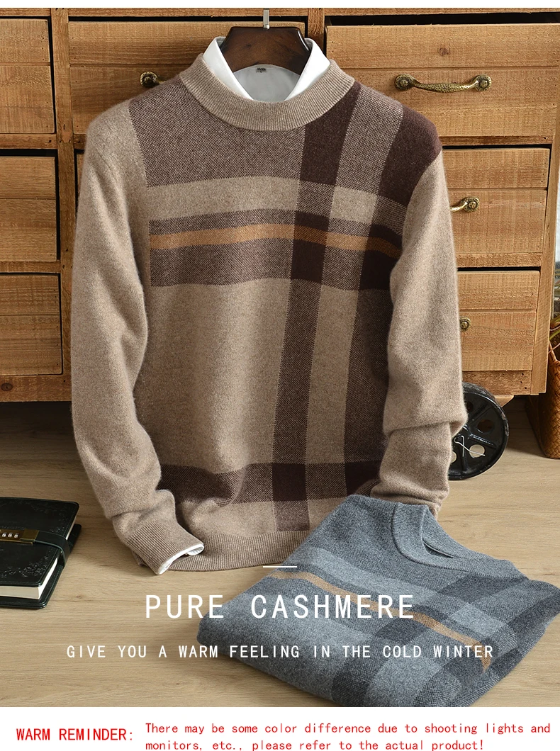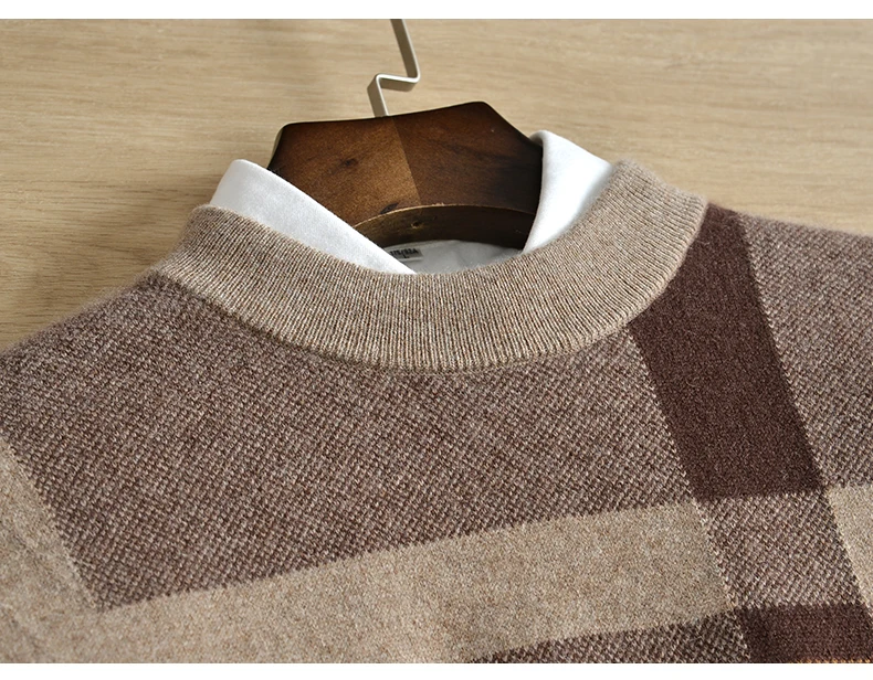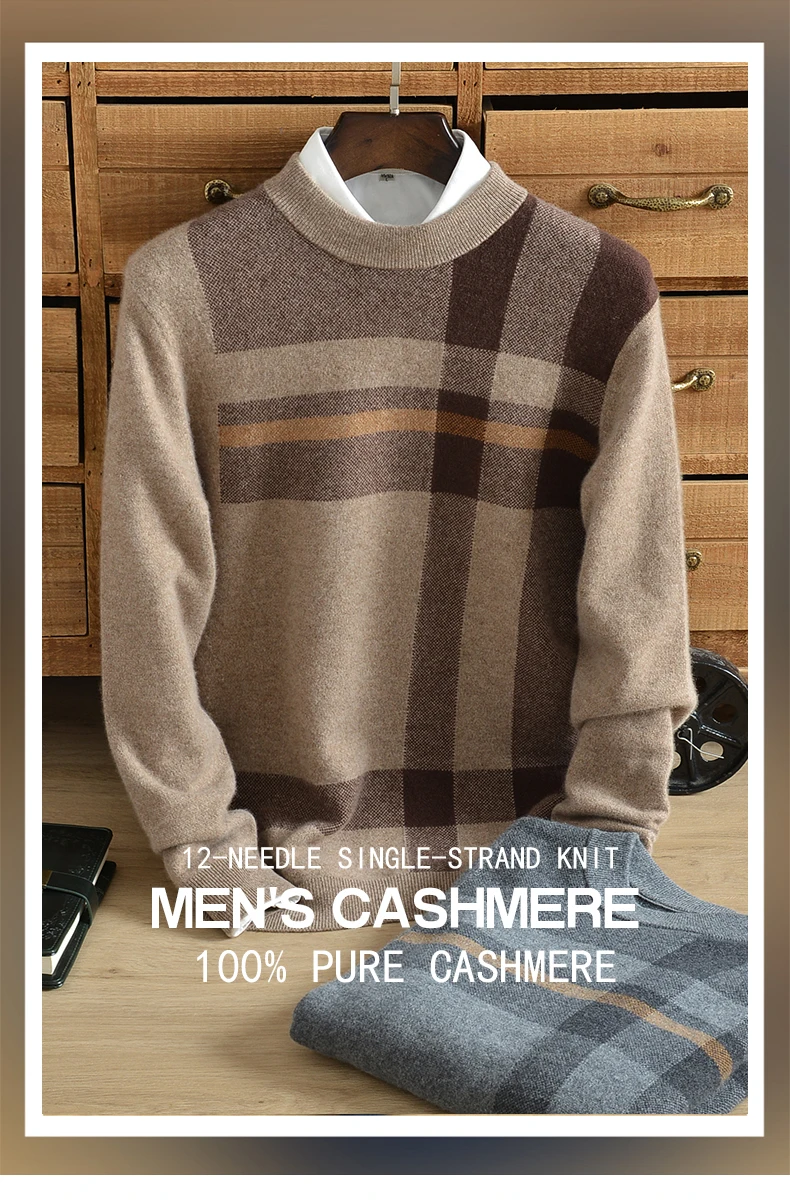 Winter cashmere sweater men thick 100% pure cashmere new cashmere half high collar plaid sweater men jacquard loose large size