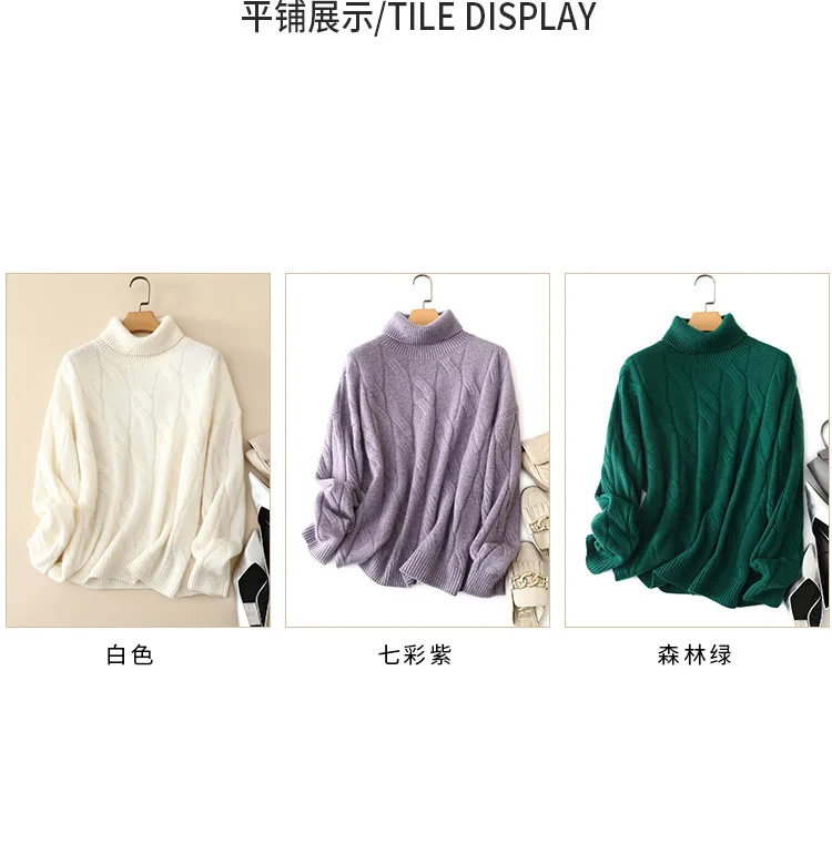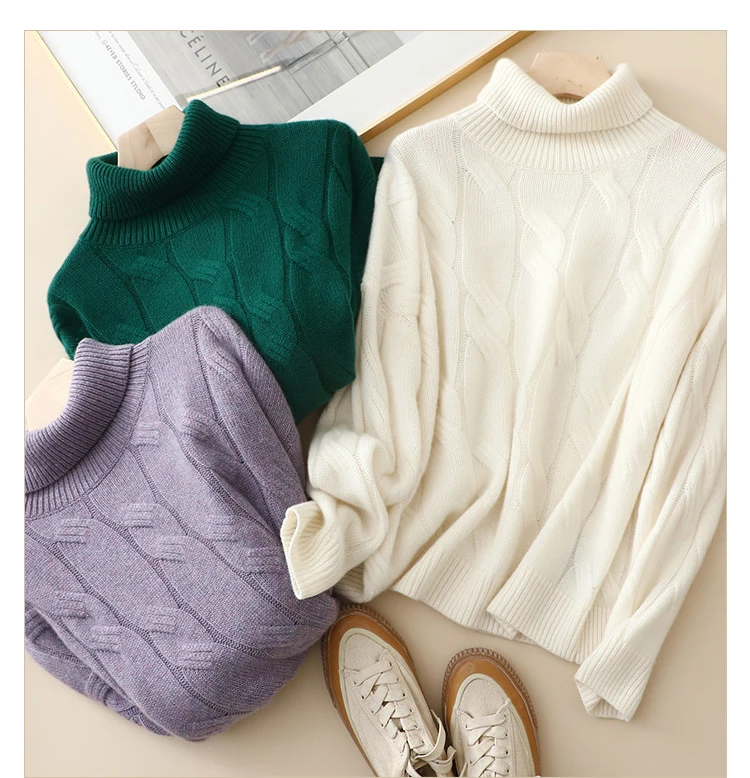 winter europe new chunky cable knit luxury 100% cashmere turtleneck sweaters