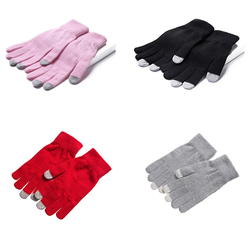 Winter Touch Screen Gloves Full Finger Women Men Warm Solid Color Cotton Warmer Stretch Knit Mittens Thicken Gloves
