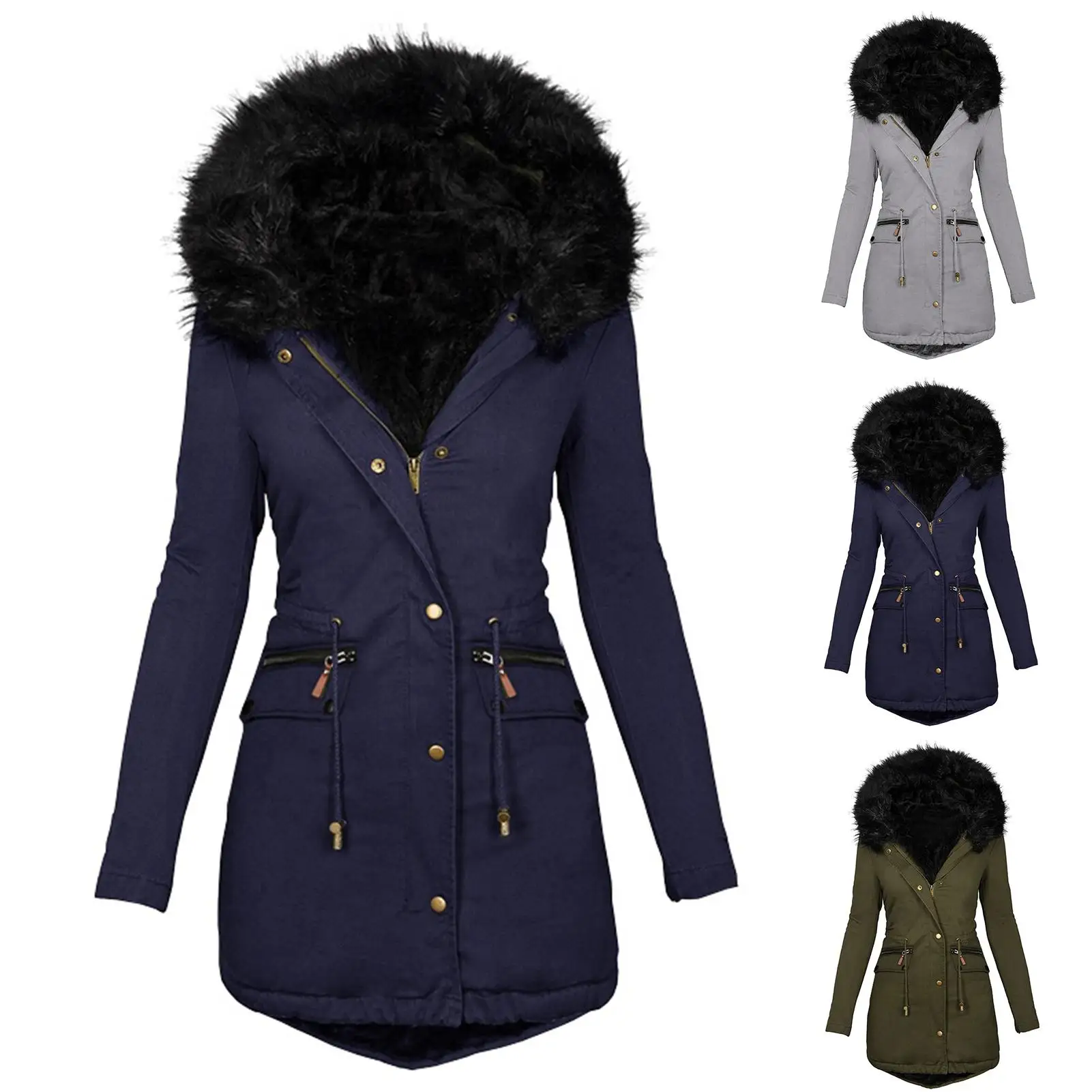 Winter Warm Coat Parka Snow Outerwear 2022 Women's Casual Jackets Coats Zipper Women Long Sleeve Faux Fur Hood Mid-length