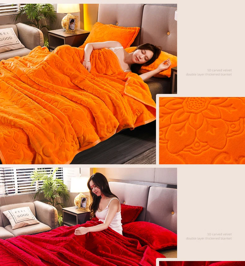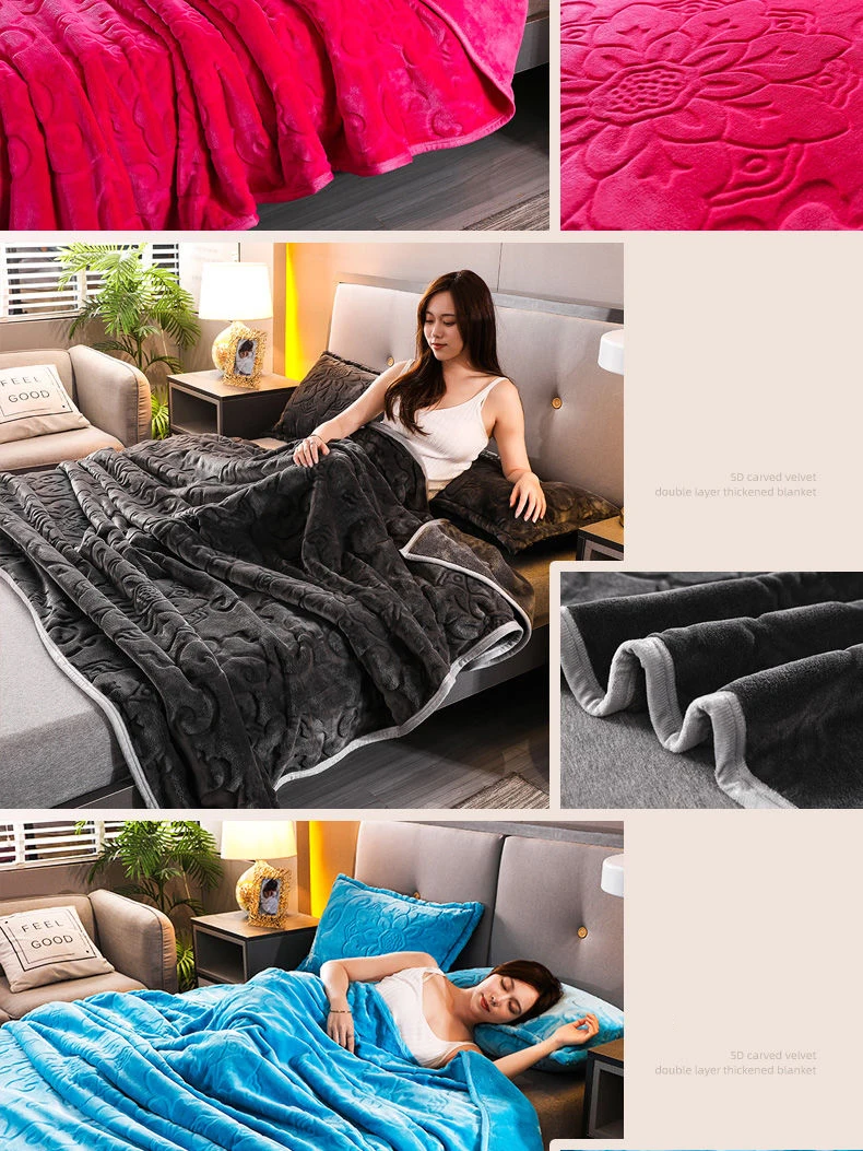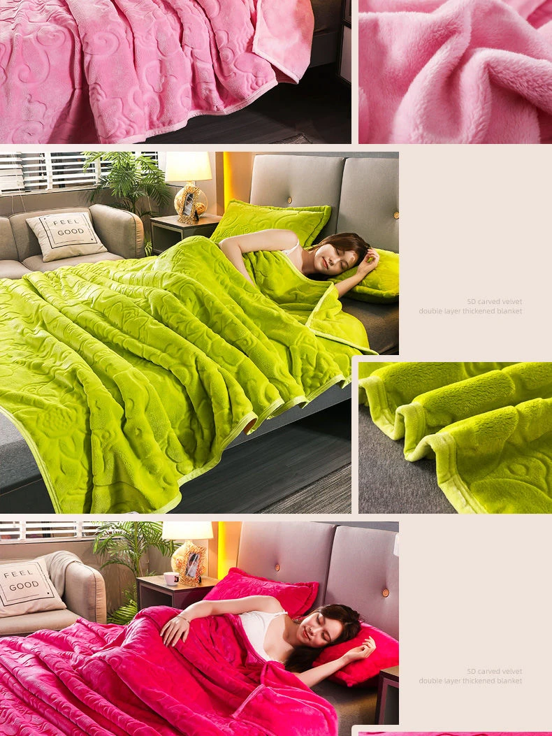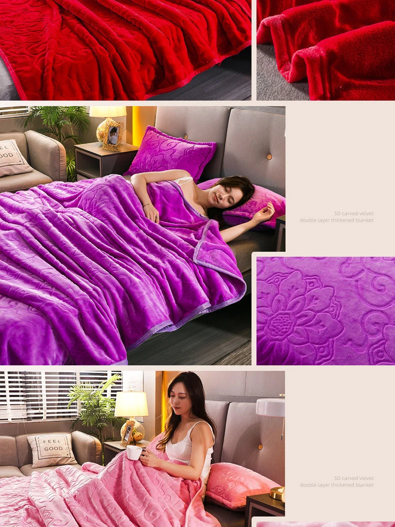 Winter Warm Couch Bed Throw Blanket Solid Soft Warm Velvet Blanket Autumn Home Decor Flower Bedding Bedspread Blanket
