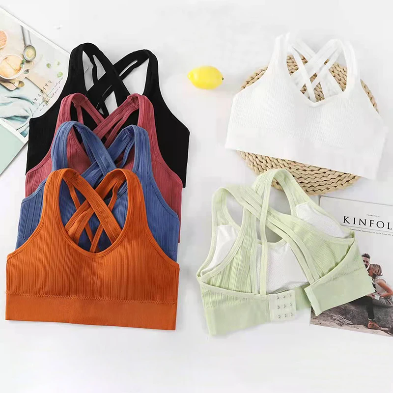 Women Cross Strap Sport Bra Top Women Push Up Yoga Bra Crop Top Running Vest No Steel Ring Breathable Fitness Bra Sportswear Gym