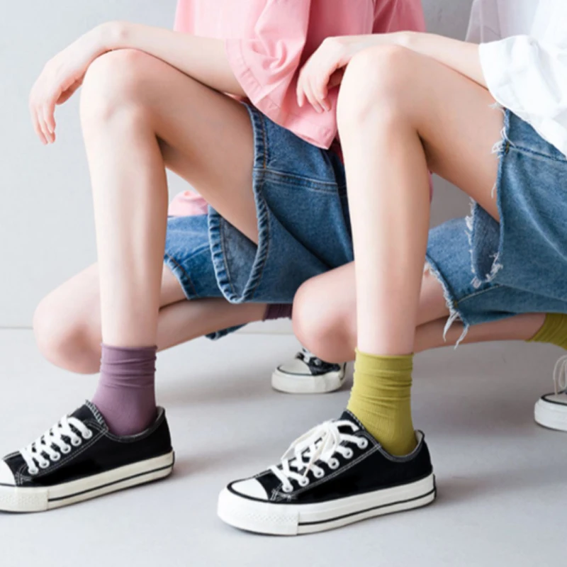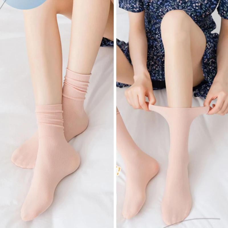 Women Girls Summer Thin Loose Socks Velvet Soft Breathable Long Socks Solid Color Black White Khaki Beige Harajuku High Socks