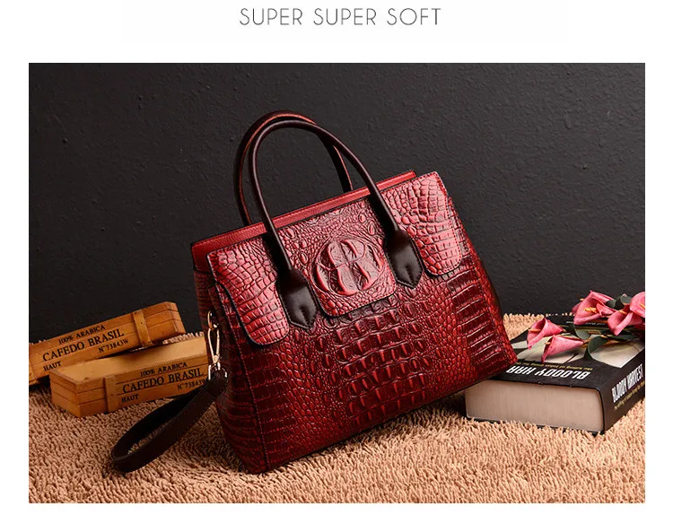 Women Handbag Genuine Leather Women Crocodile Luxury Handbags Women Bags Designer Crossbody Bags Female Retro Tote Handbags
