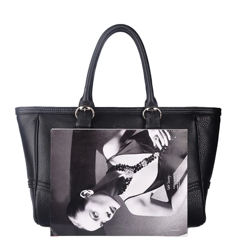 Women handbags casual zipper large capacity tote bag practical soft calfskin grain leather shoulder bags