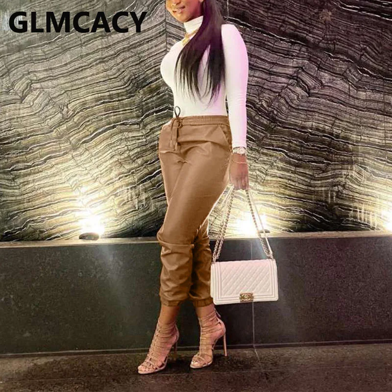 Women High Waist Slim PU Leather Pants Chic Streetwear Trousers