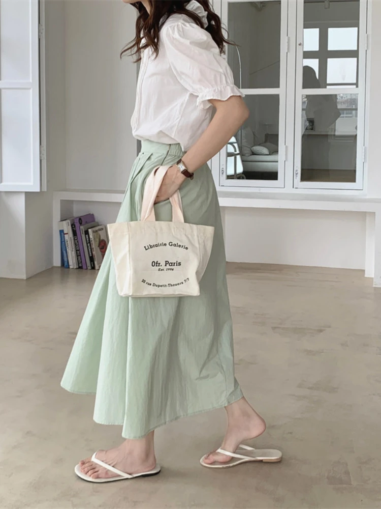 Women Letter Mini Handbag Korean Style Canvas Shopping Bag for Boutique Female Letter Print Lunch Bag Tote Pouch