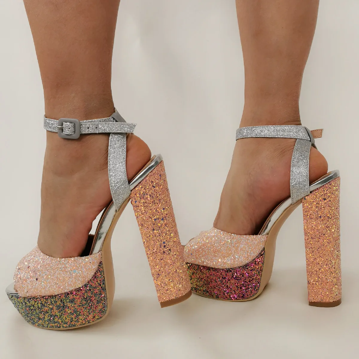 Women Luxury Platform Crystal Single Strap Sandals Chunky Heels Open Toe Dress Shoes Party Summer Nice Pumps Size47 Shoes