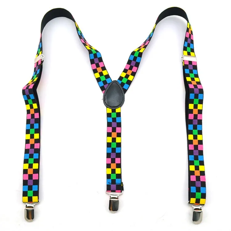 Women Men's Shirt Suspenders For Trousers 7 Fashion "Rainbow Check Plaid" Mix Pants Holder Braces Wedding Shoulder Straps Belts