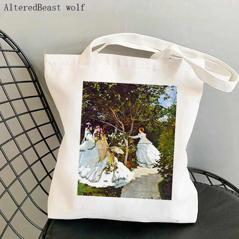 Women Shoulder bag Monet Water Lilies Kawaii Bag Harajuku Shopping Canvas Shopper Bag girl handbag Tote Shopper Lady Bag