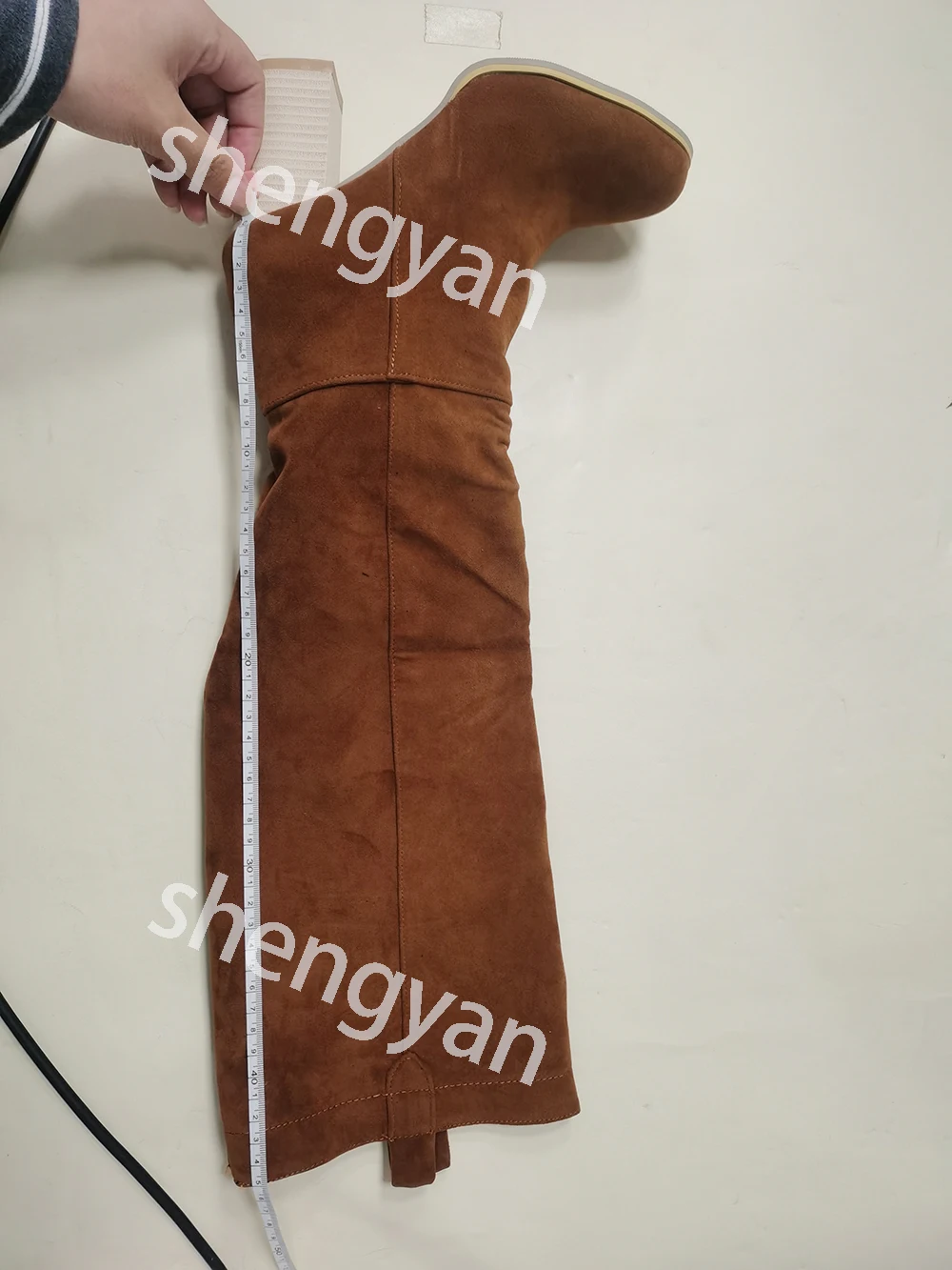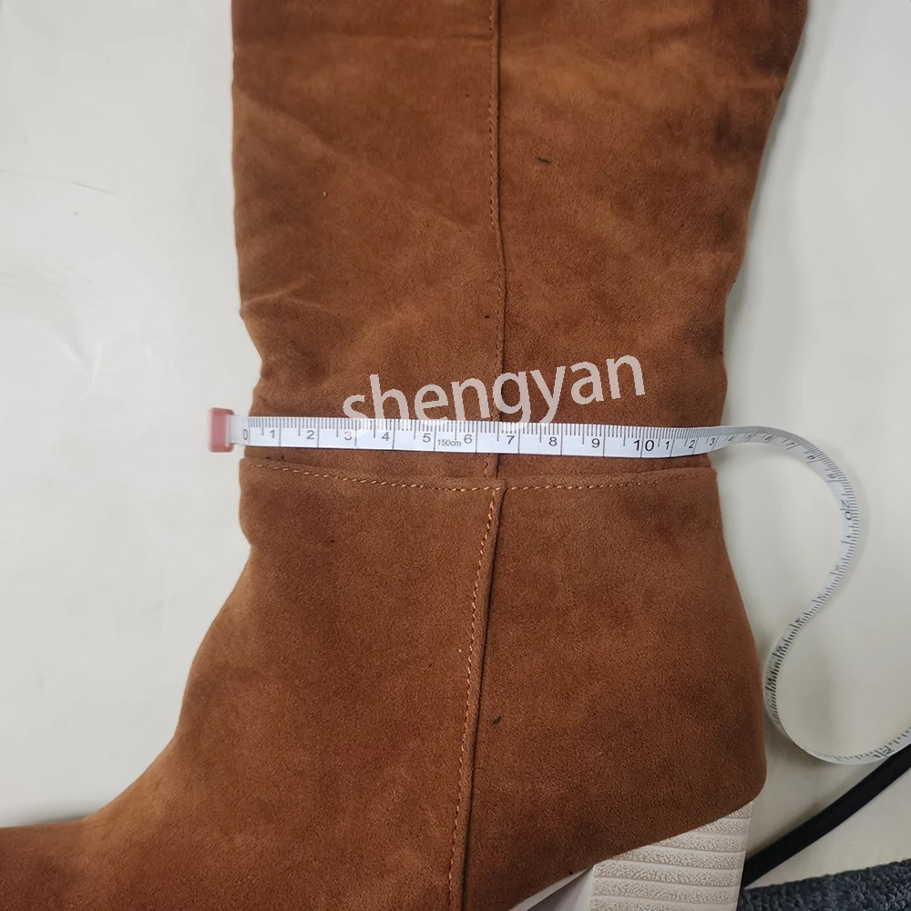 Women Suede Knee High Boots Ladies Solid Pointed Toe Tall Boots Retro Roman High Heels Shoes 2022 Female Autumn Winter Long Boot