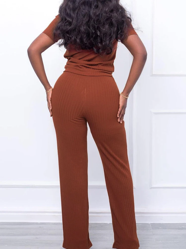 Women Summer Two Piece Ribbed Suits Short Sleeve Crop Top & Casual Stretchy Pants Set