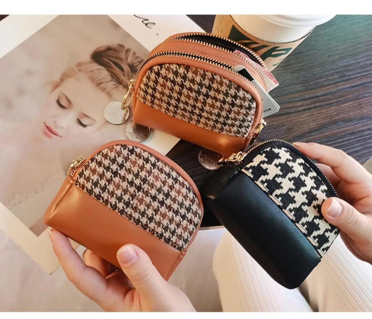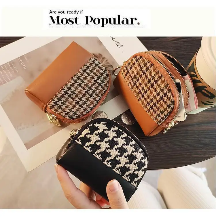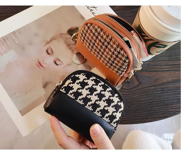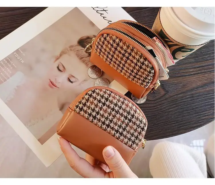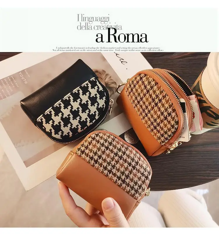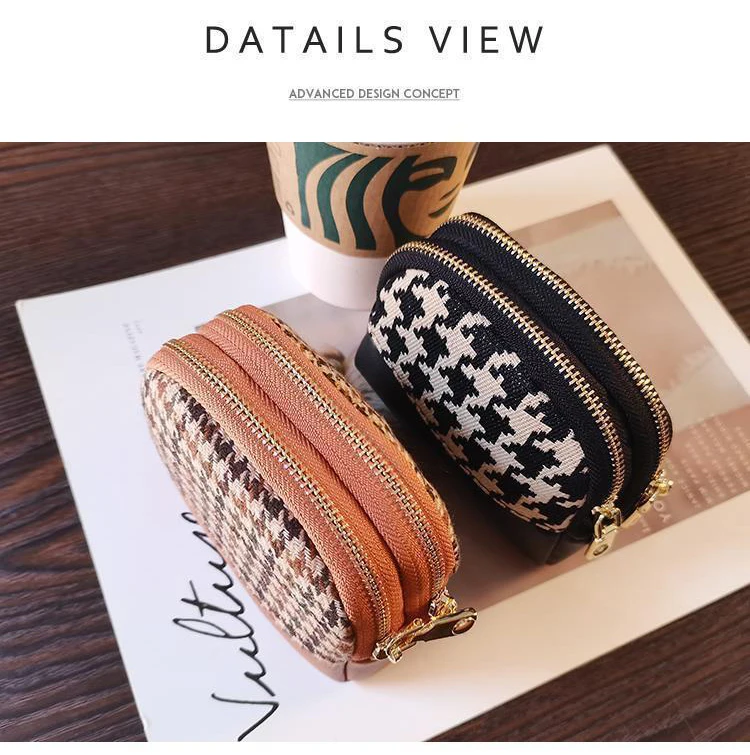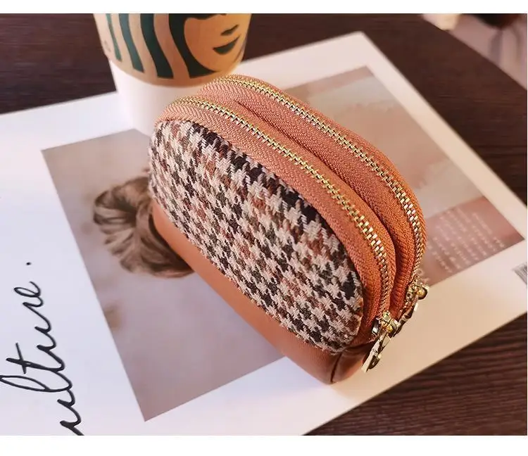 Women'S Coin Purse Double Zipper Small Wallet Portable Key Pouch Travel Card Holder Fashion Vintage Coin Bag For Female