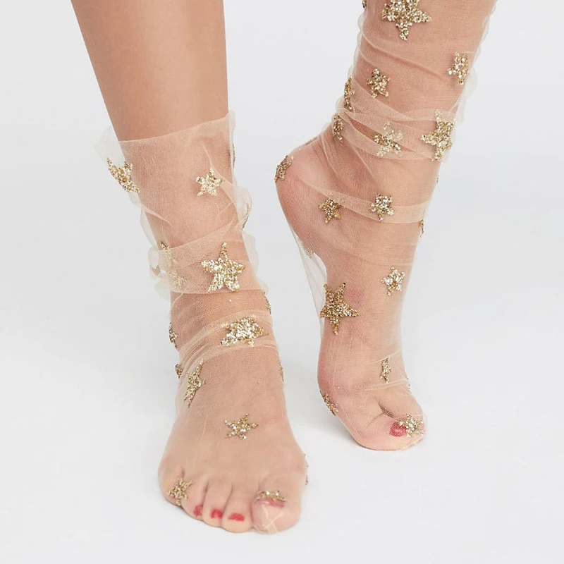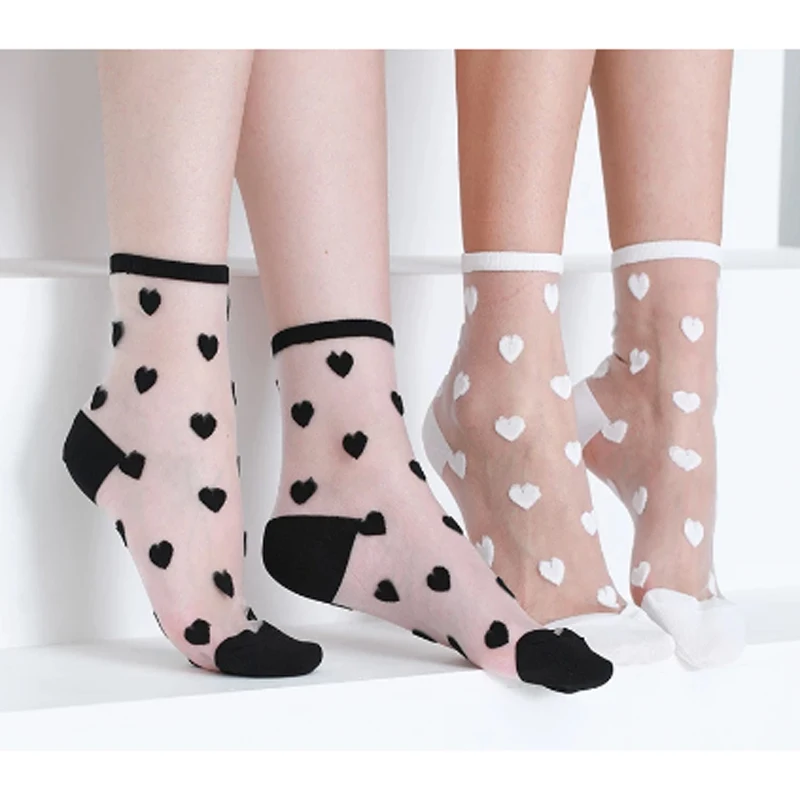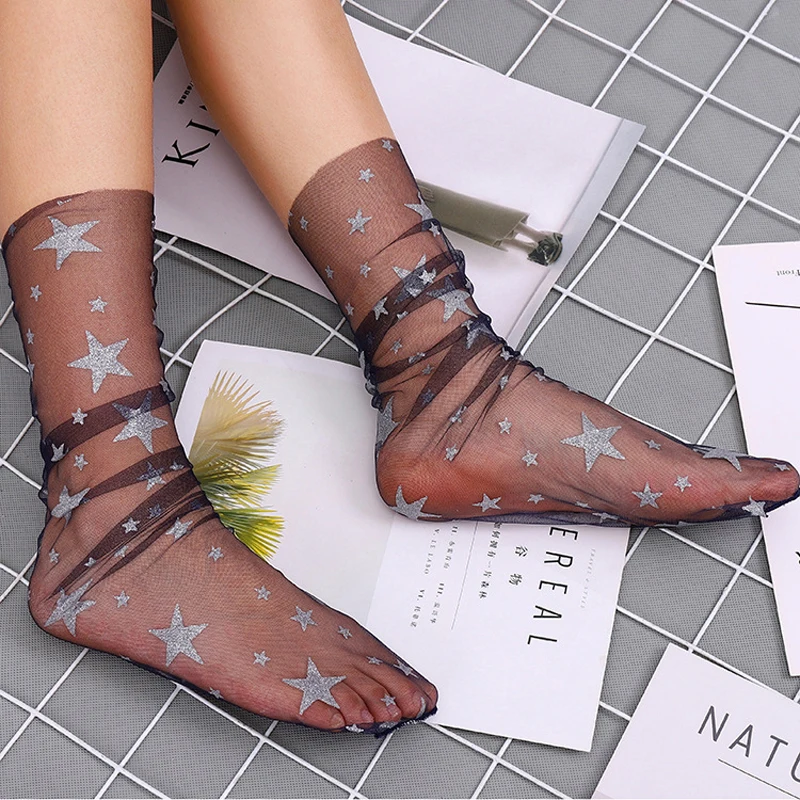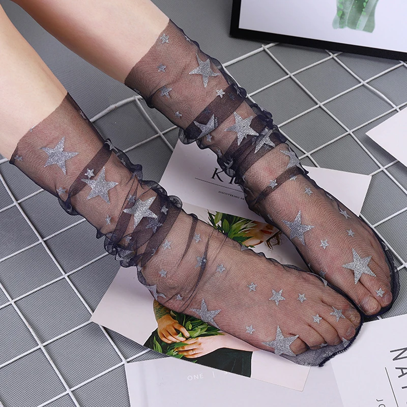 Women's Ladies Girls Summer Sexy Mesh Silk Socks for Female Ultrathin Transparent Nylon Short Socks With Lace Embroidered