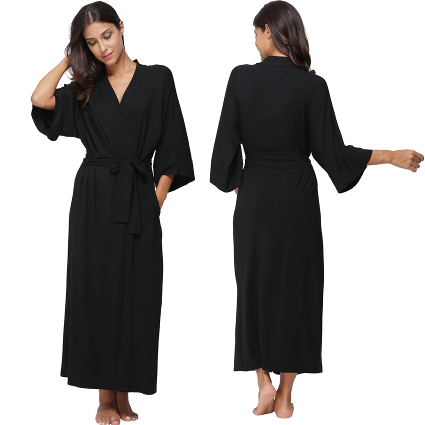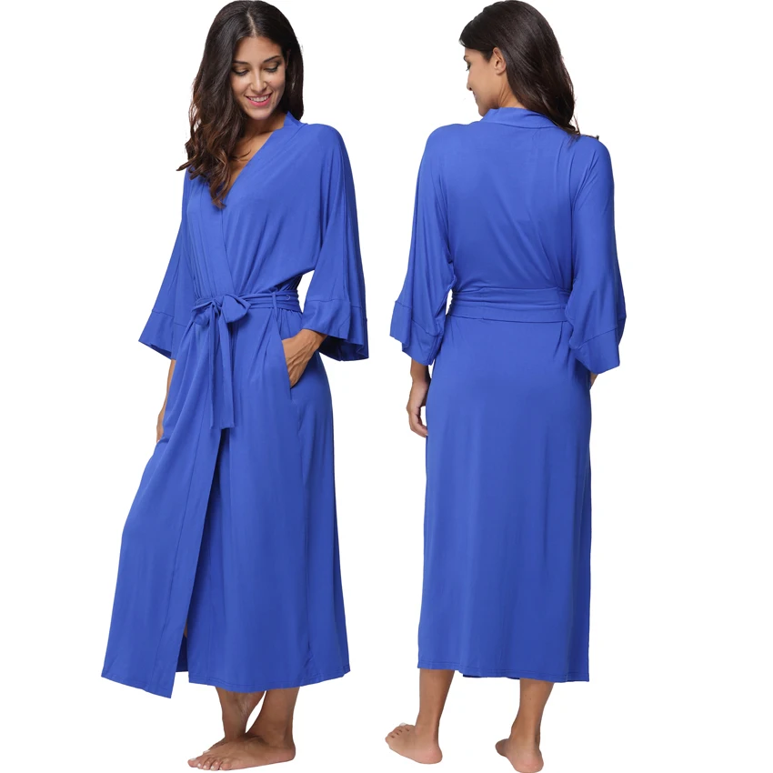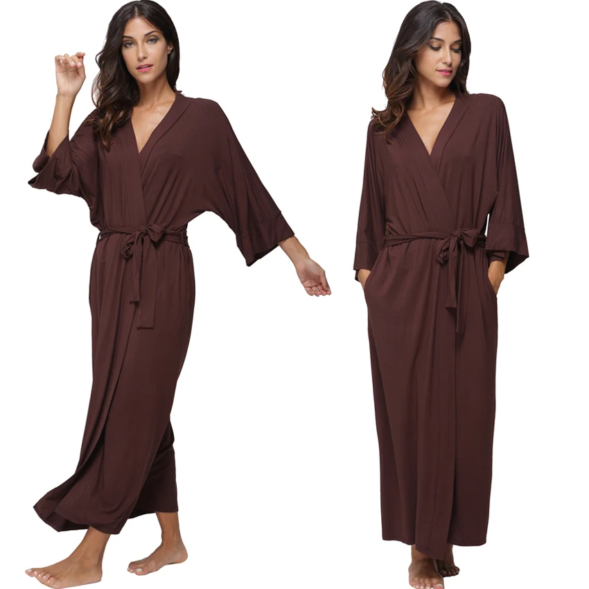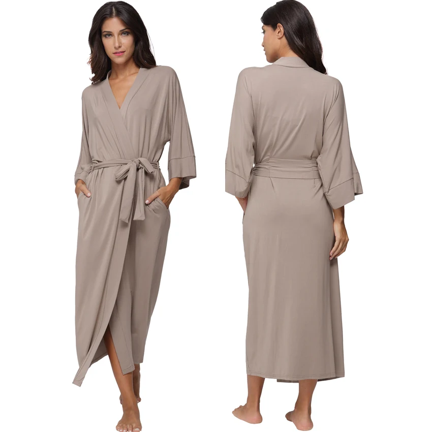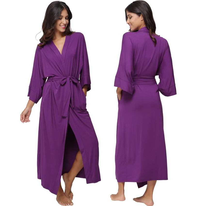 Women's Long Cotton Winter Nightgowns Soft Modal Knit Sleepwear Lightweight Full Length Kimono Robes V-Neck Housecoat Bathrobes