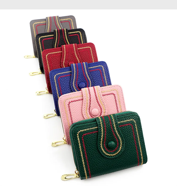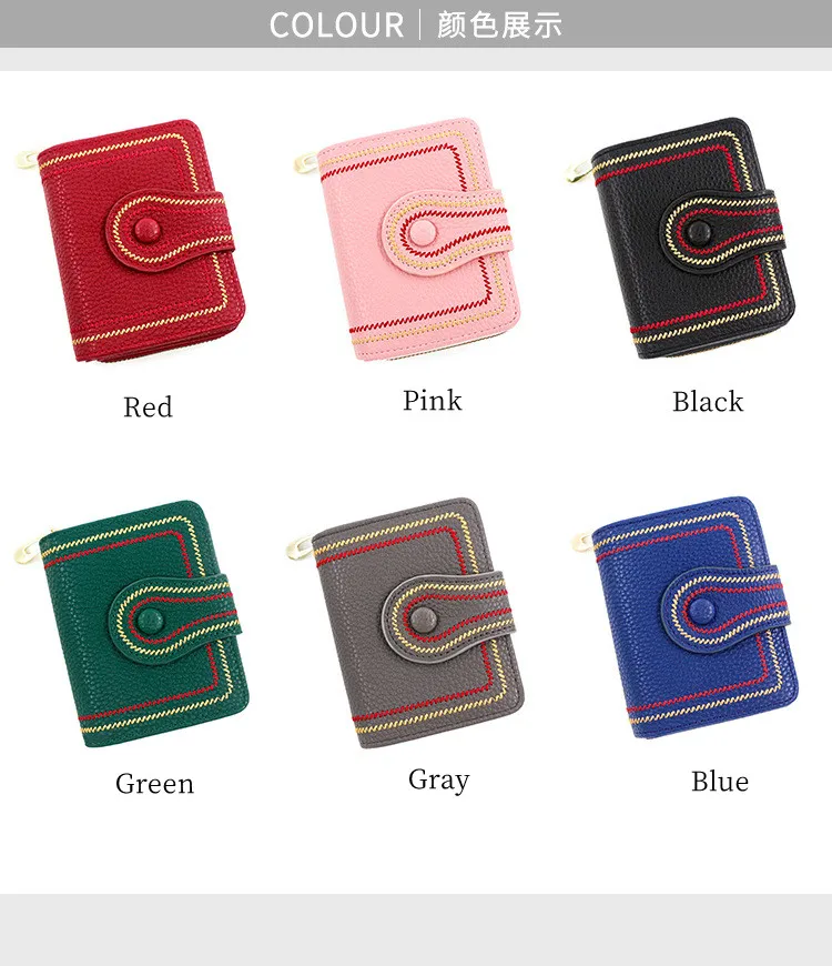Women’s Wallet PU Leather Short Zipper Hasp Blue/Black/Red/Pink/Gray/Green Purses for Women Credit Card Holder Embroidery Last