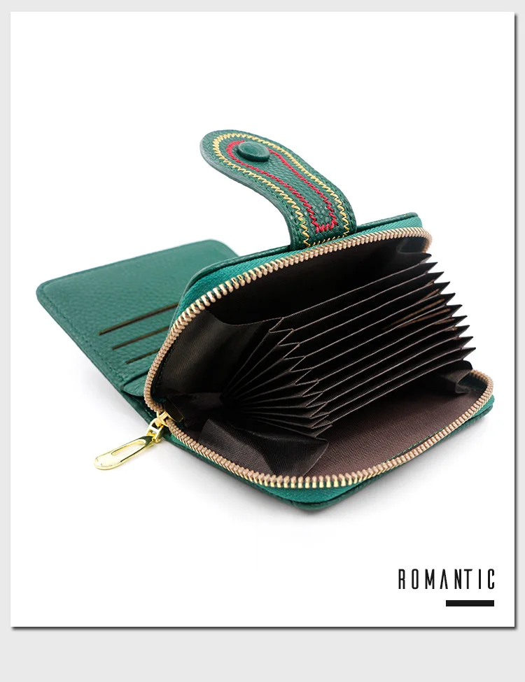 Women's Wallet PU Leather Short Zipper Hasp Blue/Black/Red/Pink/Gray/Green Purses for Women Credit Card Holder Embroidery Last