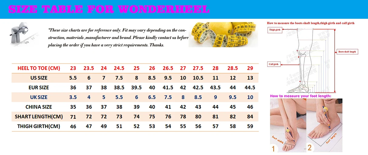 Notes: The height of the heel for size US6 to US7.5 is 14cm, the height of the heel for size US8 to US10 is about 16cm, and the height of the heel for size US10.5 to US13 is about 17-18cm.