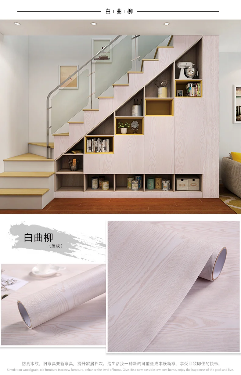 Wood grain sticker thick waterproof self-adhesive wallpaper wardrobe cabinet old door furniture table renovation decorative wood
