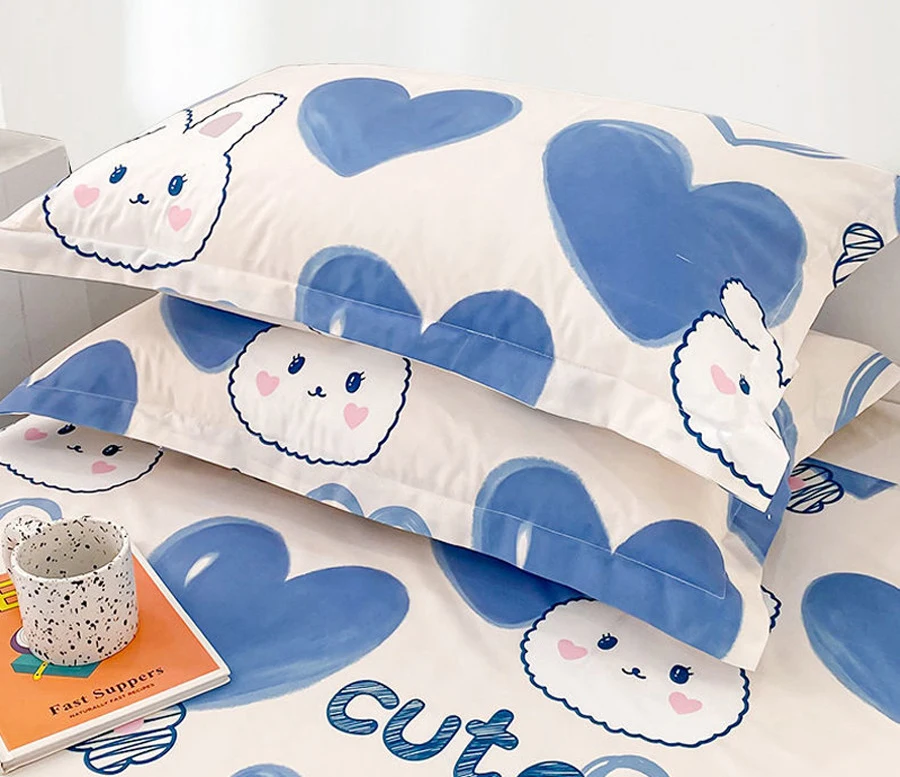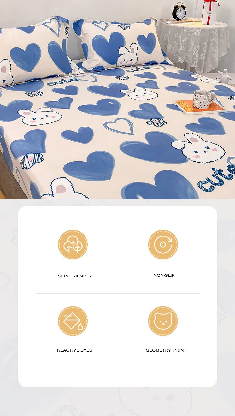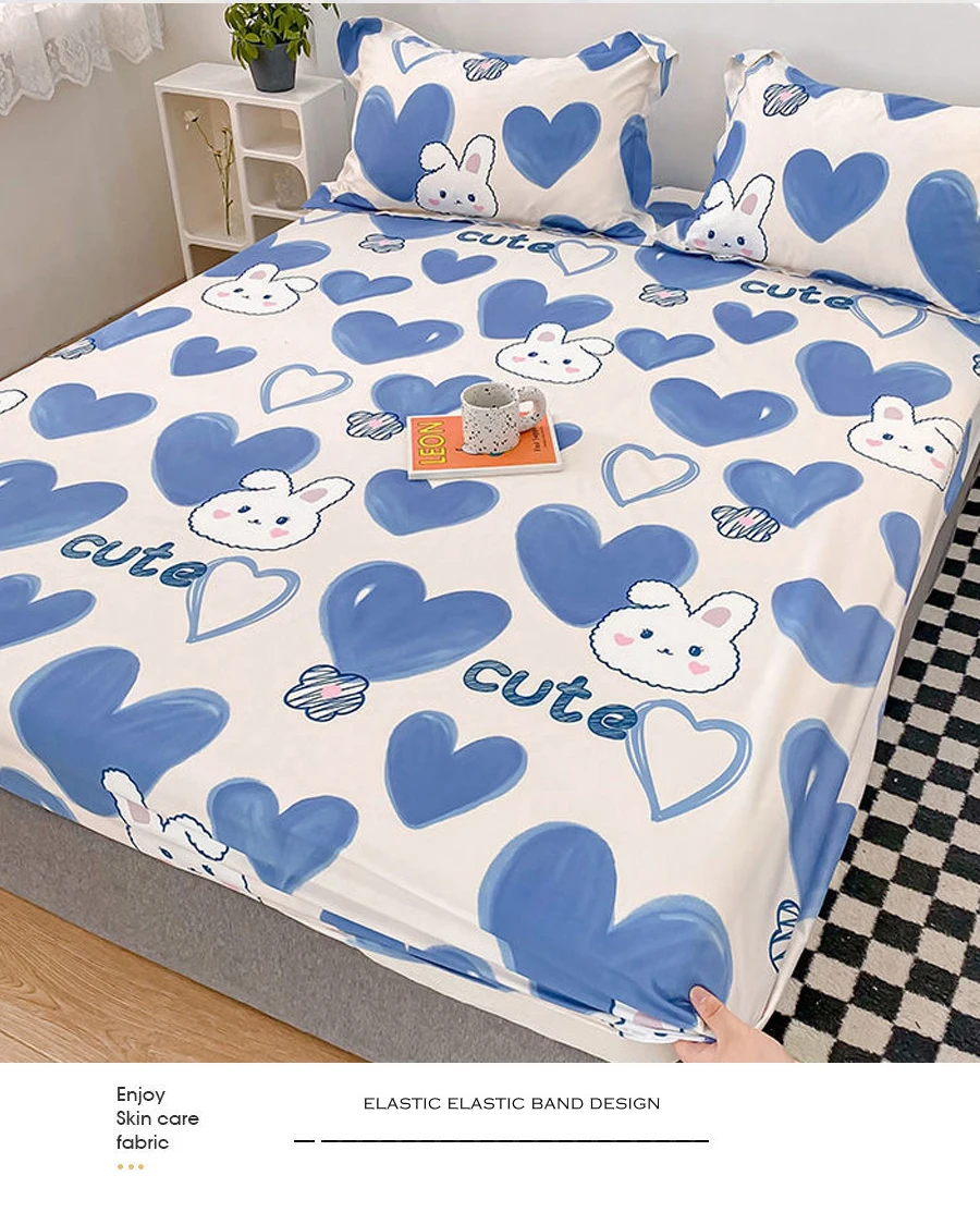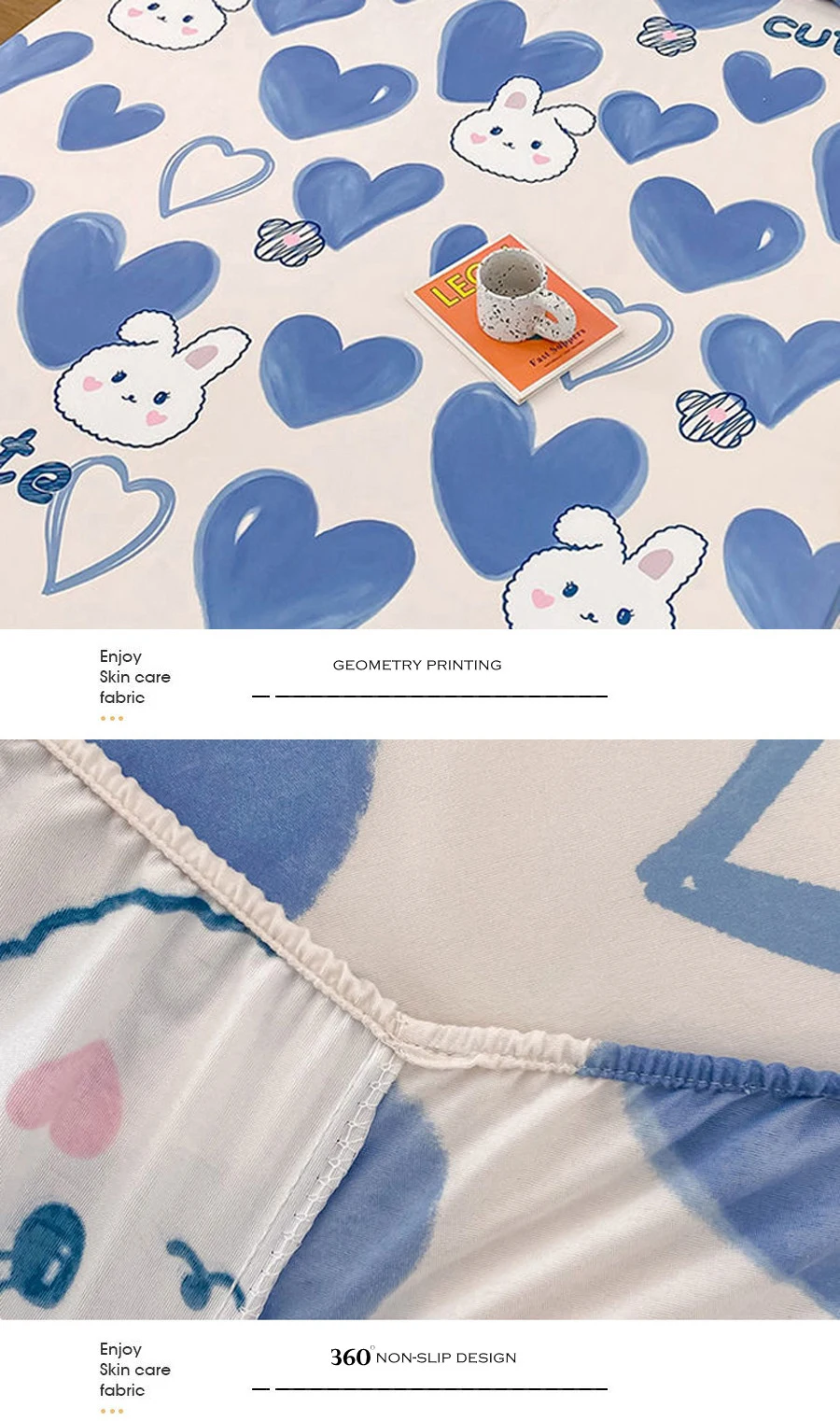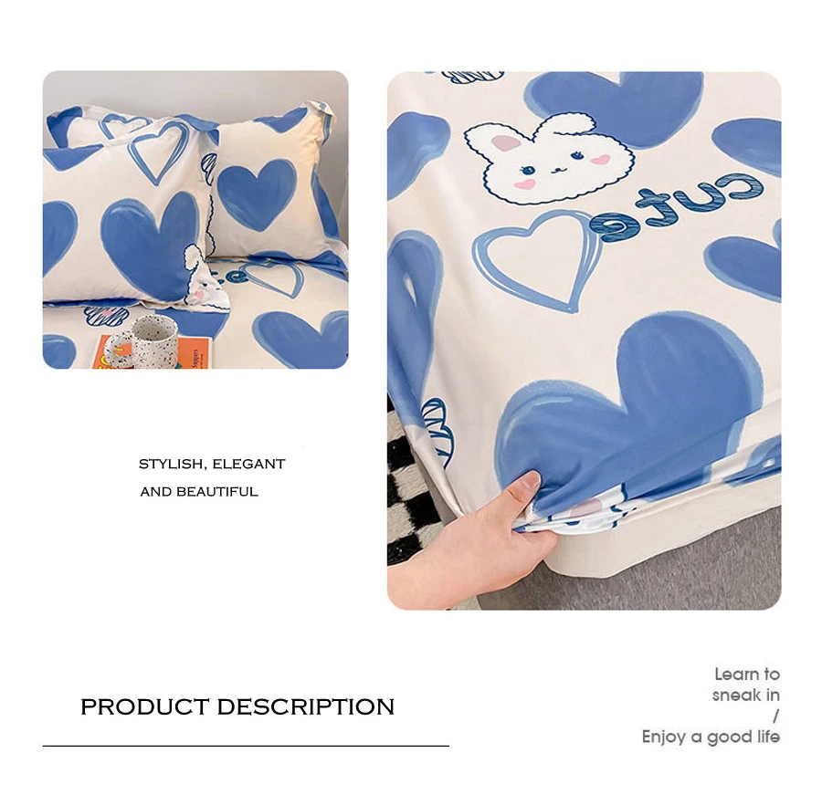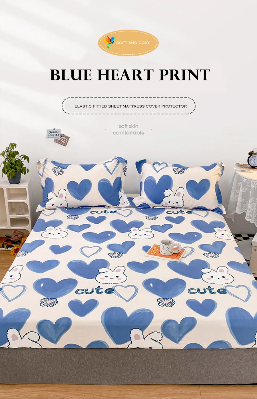WOSTAR 100% Polyester elastic fitted sheet mattress cover protector blue heart print luxury double bed bedsheet 90 150 180 200cm