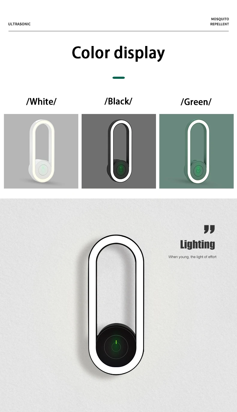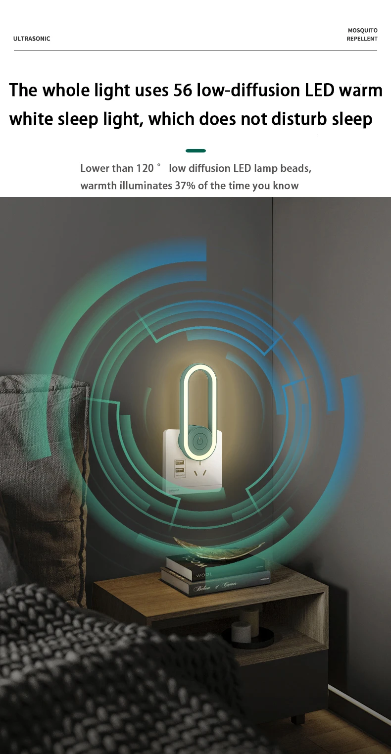 1. Ultrasonic Mosquito Repellent Night Light uses mirrored sound waves to produce sound. The sound hole is located on the back of the product, and uses the principle of preventing sound wave reflection to form a mirror sound wave. It makes sound waves propagate better and has the effect of reducing noise.
