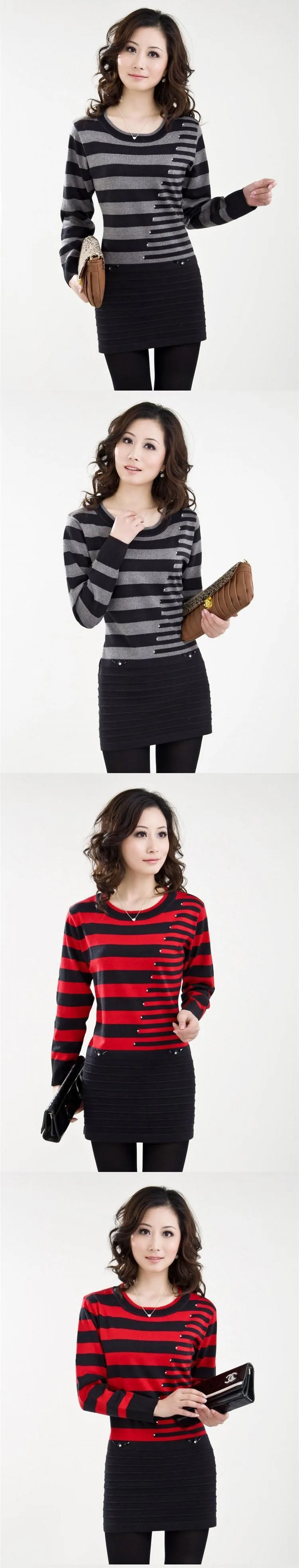XJXKS Long Pullovers Women Sweater Dress High Quality Long Sweater Women Cheap Winter Clothes Stripe Tops Autumn Knitted Jumper