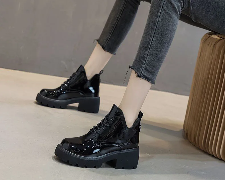XMWRLW Women's Ankle Boots 2021 Autumn Patent Leather Ladies Shoes Fashion Square Heel Ankle Boots For Women Autumn Shoes Boot