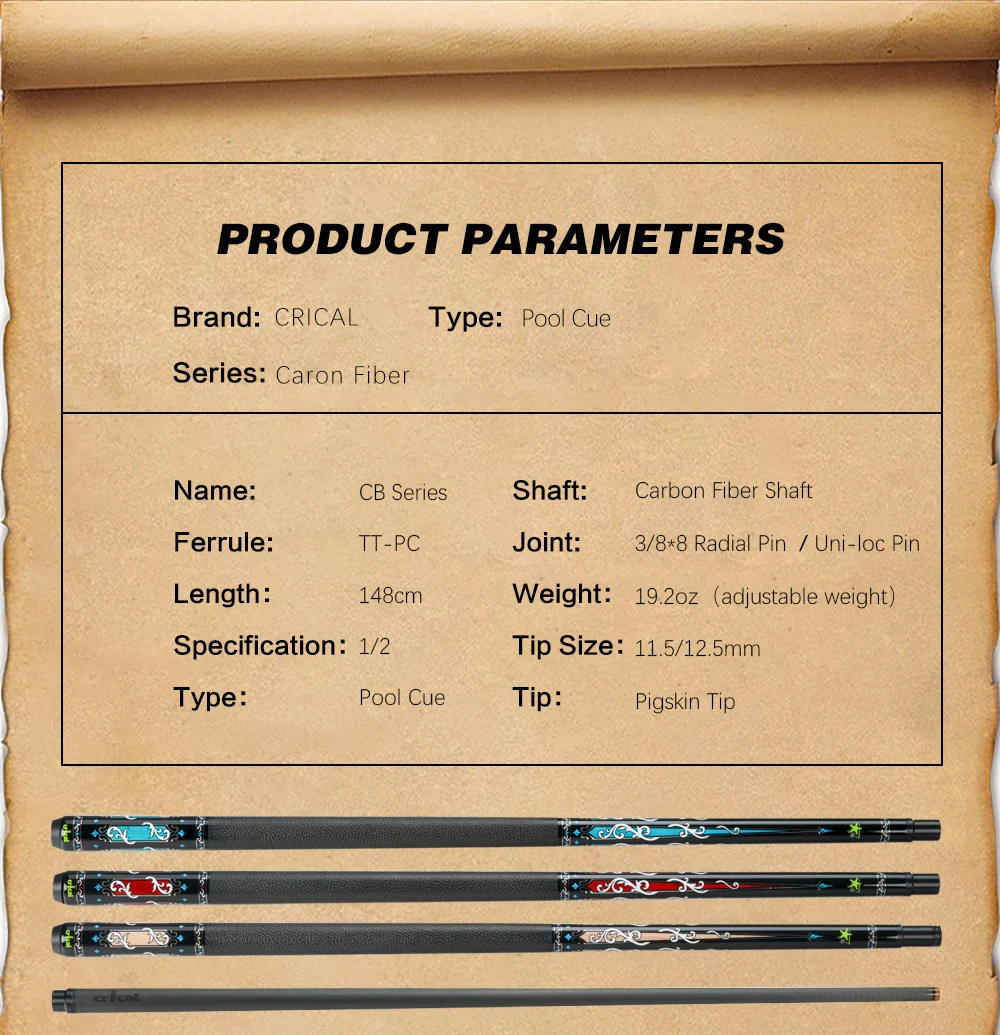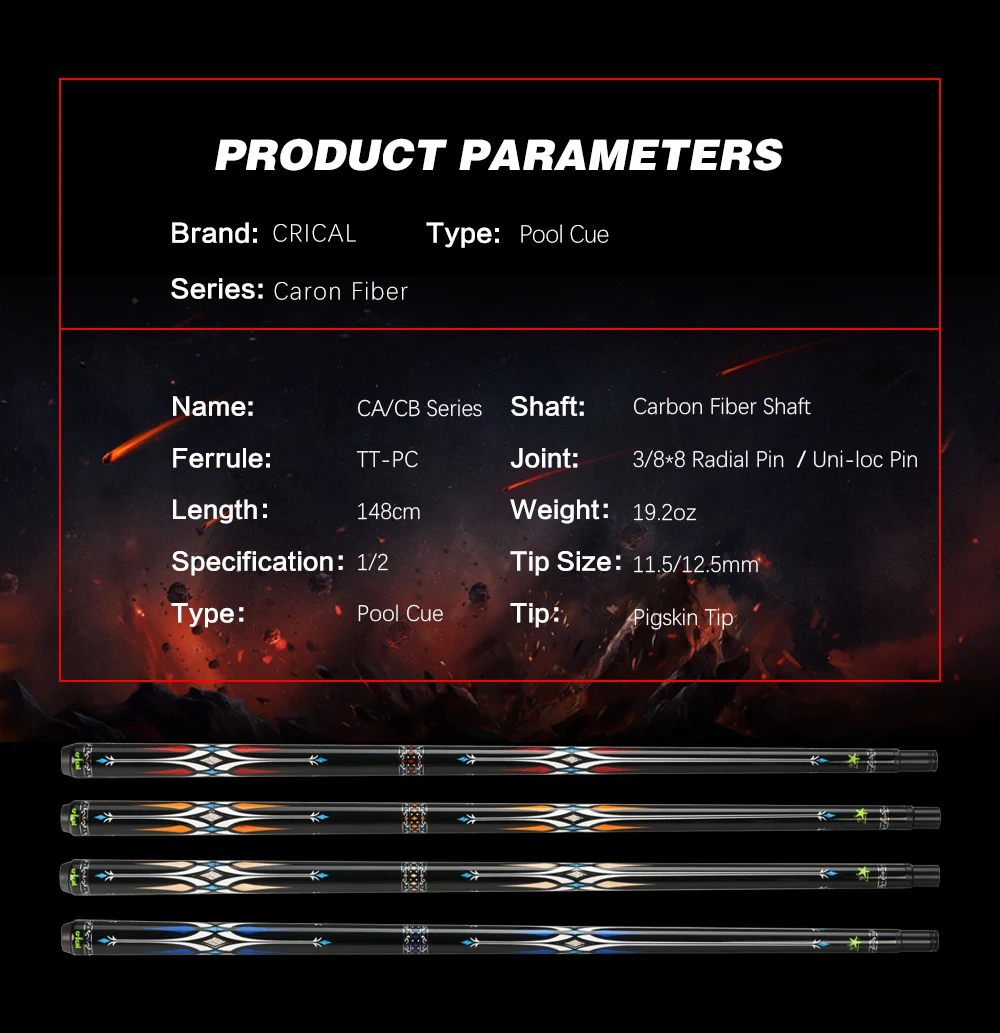 YFEN 1/2 Billiard Carbon Fiber Shaft Pool Cue Stick Professional Billiards 11.5/12.5mm Tip Carbon Technology Low Deflection Kit