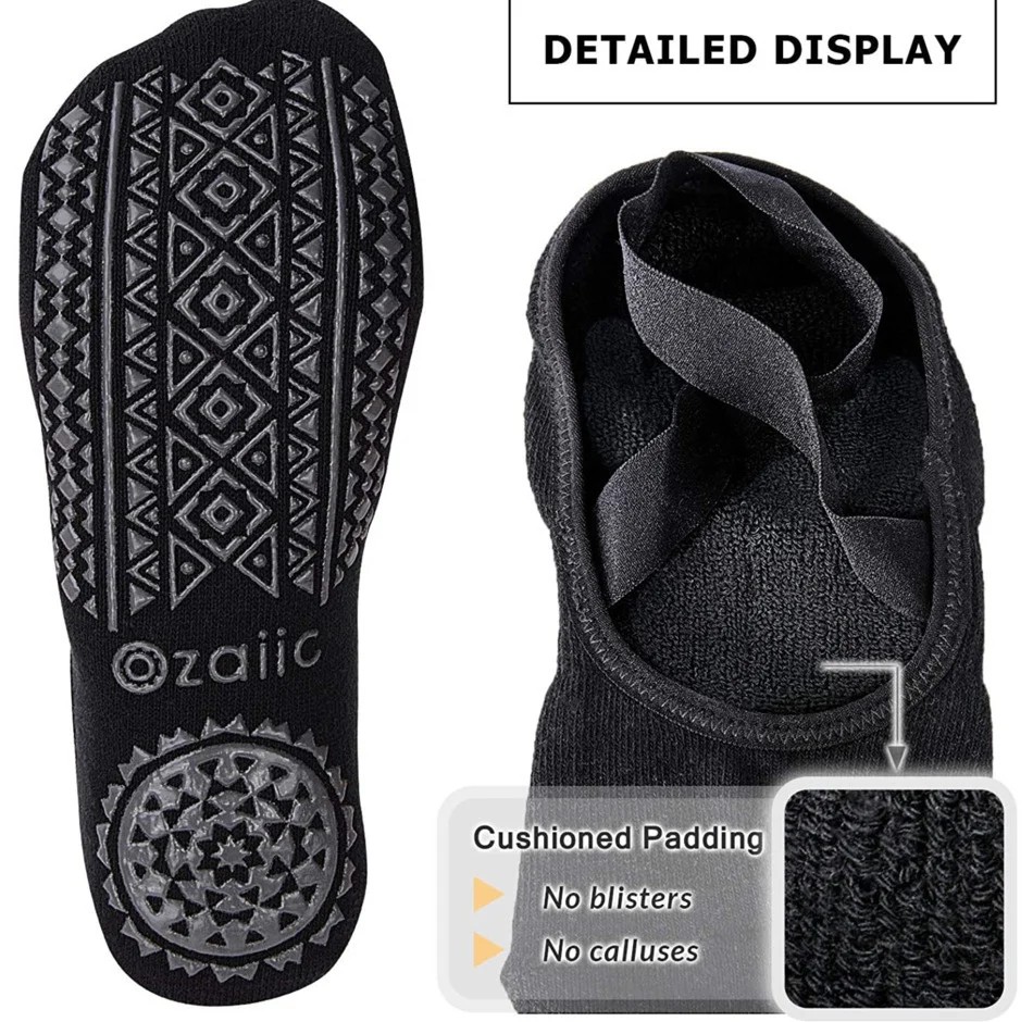 Yoga Socks for Women Non-Slip Grips & Straps, Bandage Cotton Sock, Ideal for Pilates, Pure Barre, Ballet, Dance, Barefoot Workout