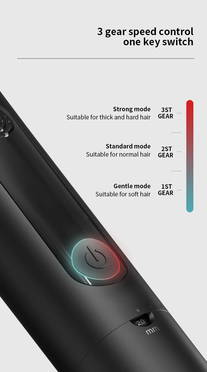 It can be operated back and forth, without blocking the line of sight when cutting hair, good heat dissipation performance, no backlog of broken hair, easy to clean