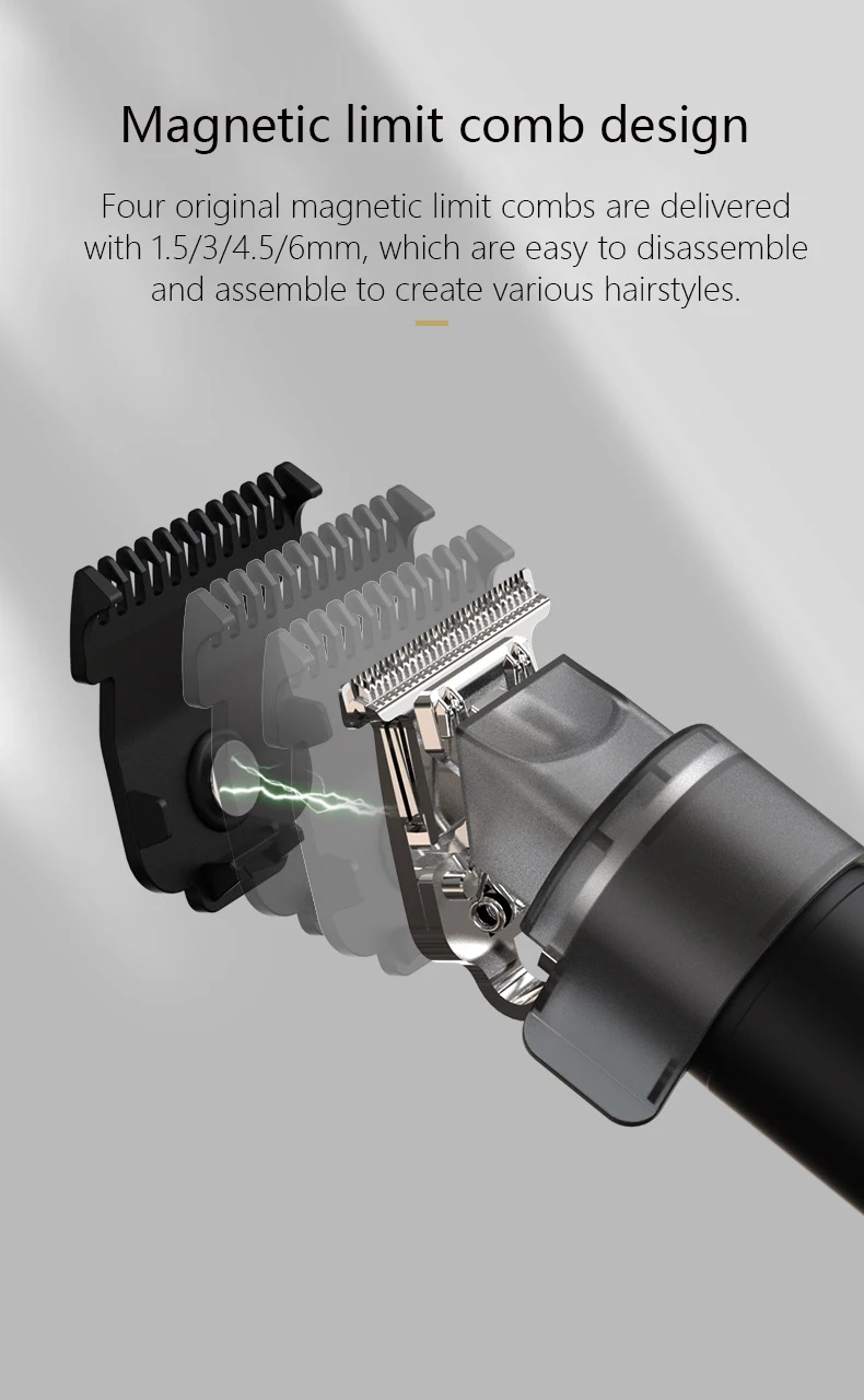 Four original magnetic limit combs are deliveredwith 1.5/3/4.5/6mm, which are easy to disassemble and assemble to create various hairstyles.