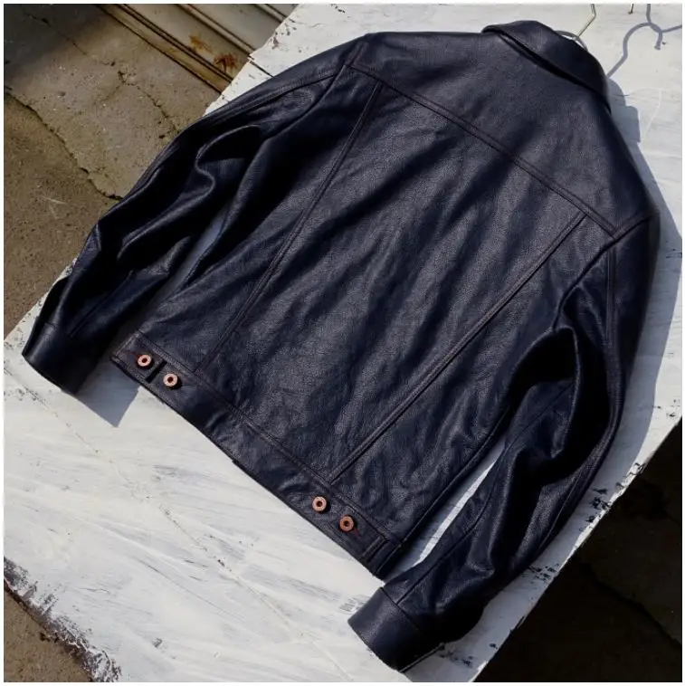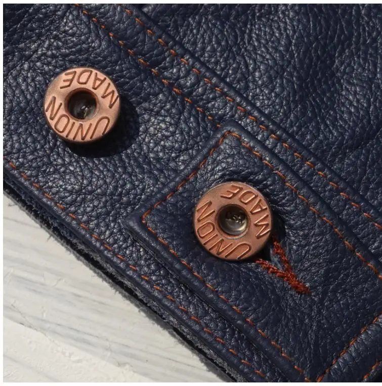 YR!Free shipping.Cuero Super slim blue genuine leather jacket.men classic casual short young cowhide coat.sales.fashion 천연 가죽