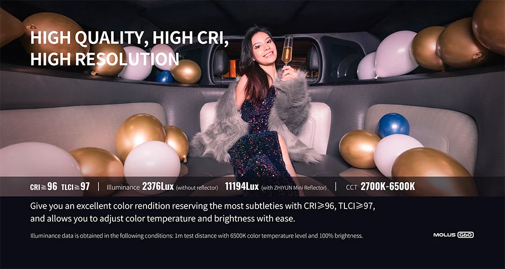 Zhiyun MOLUS G60 LED Video Light 60W Pocket COB Light Photography Fill Lighting for Photos Studio Video Youtube/Outdoor Shooting