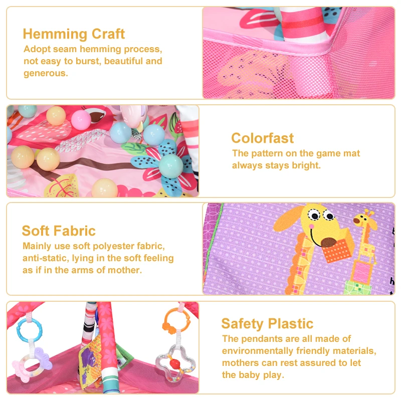 1. It is suitable for newborn babies, lying down to play, the small pendant on the fitness frame can attract the baby’s attention, exercise the baby’s visual development and movement development.
